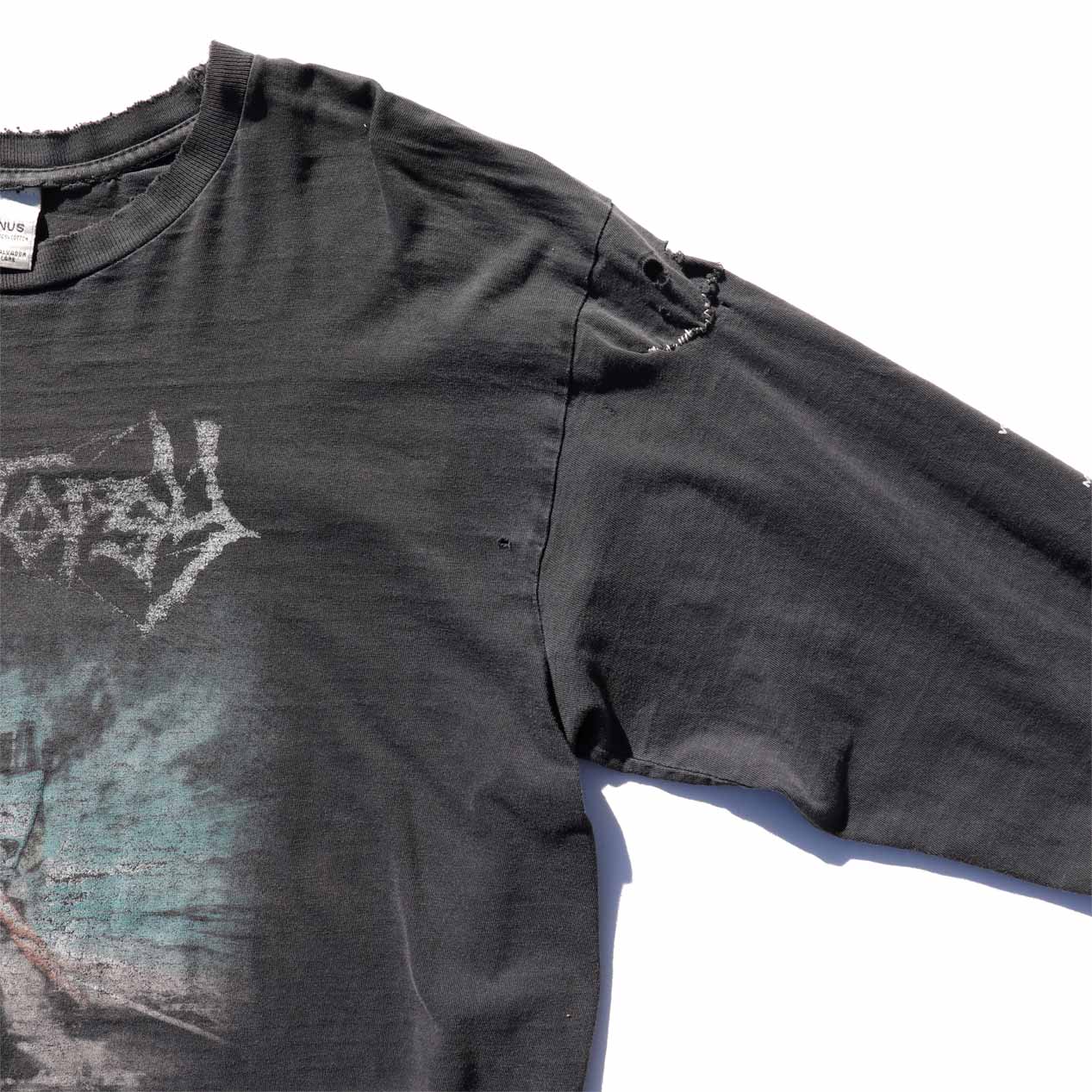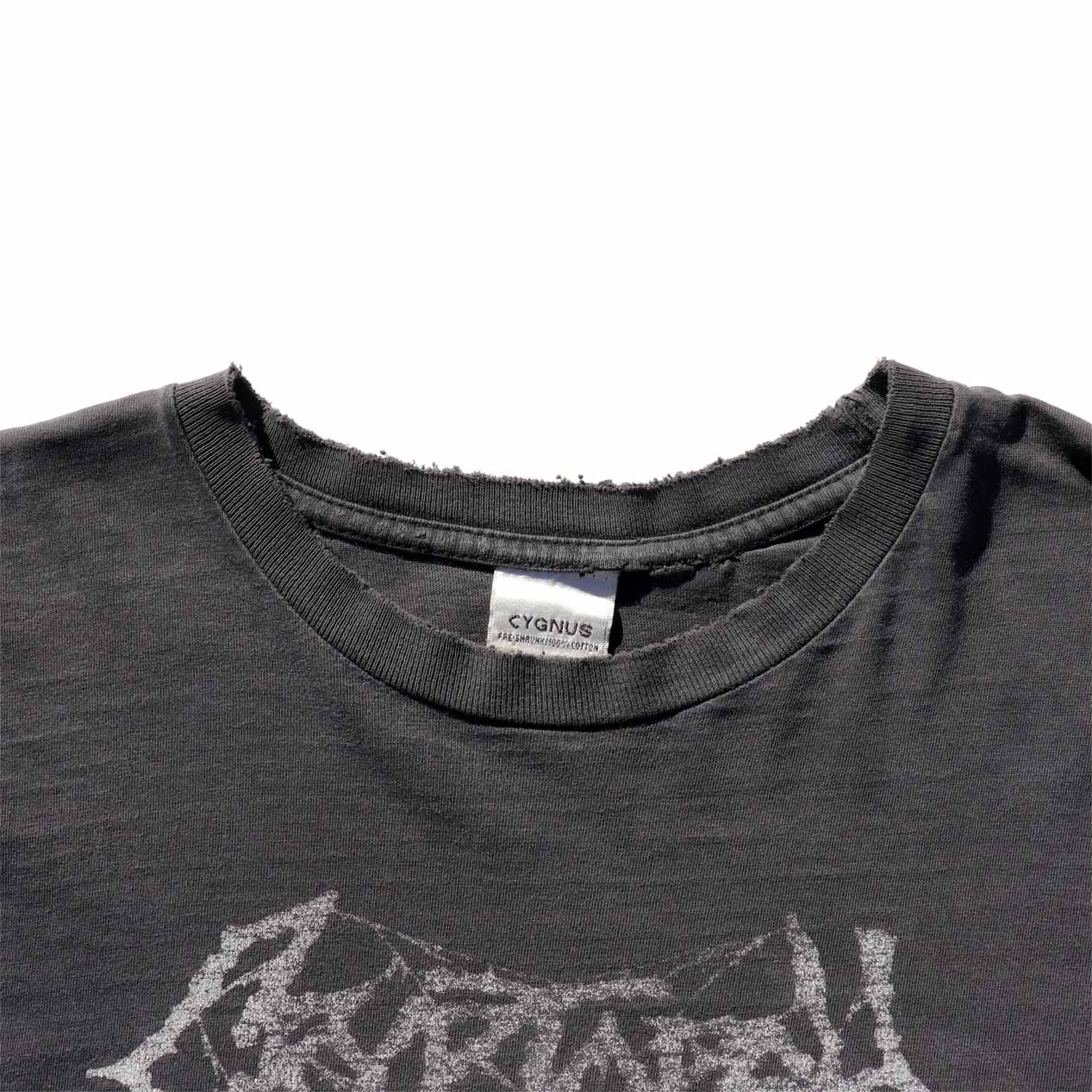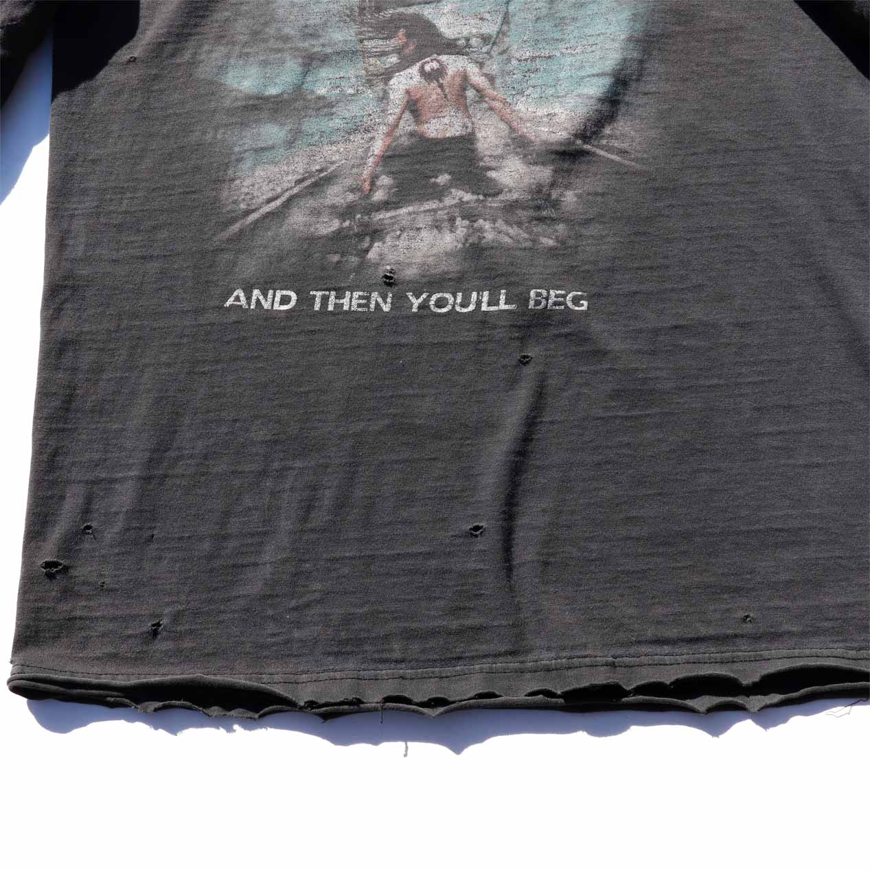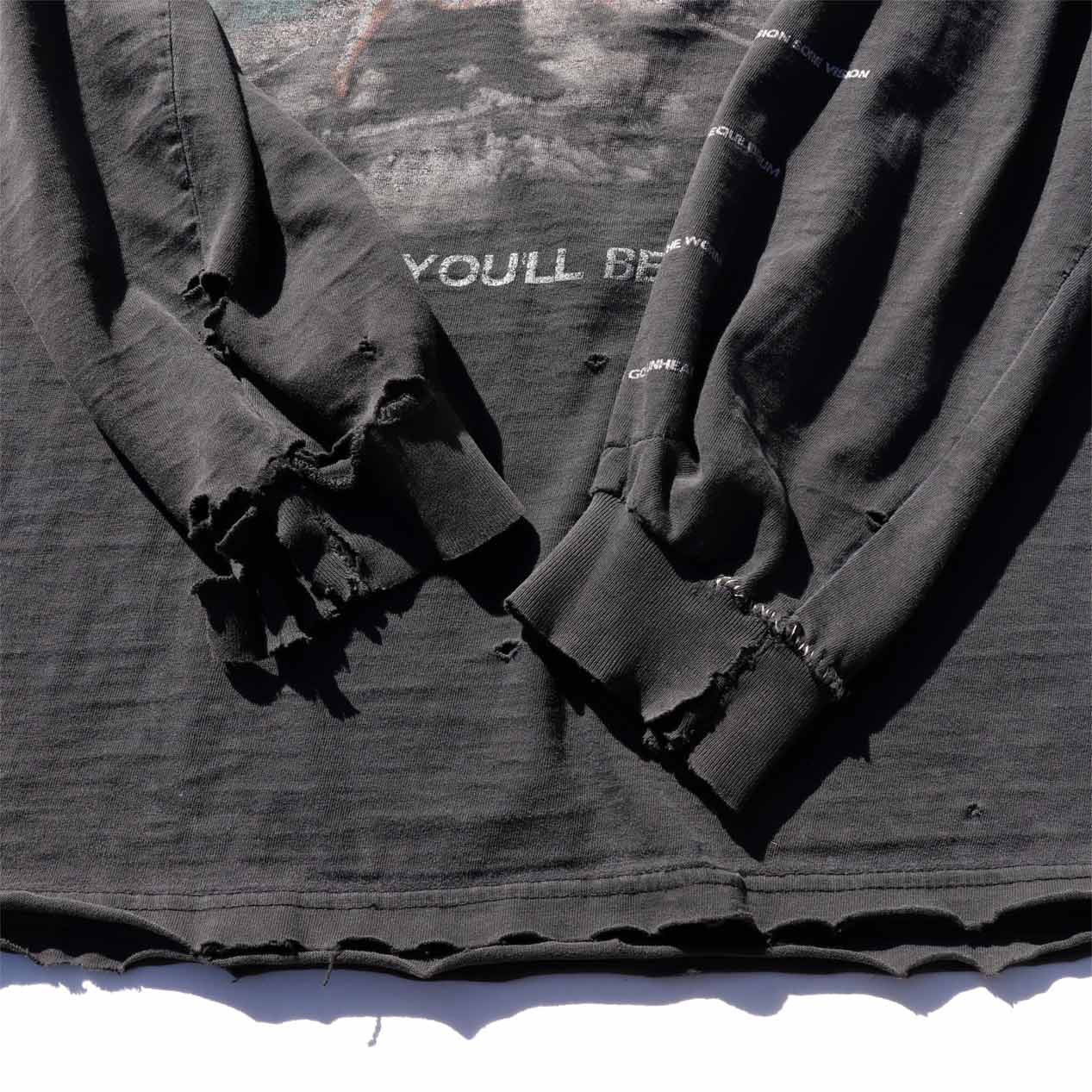 MODEL : CRYPTOPSY “AND THEN YOU’LL BEG” Damaged L/S T-Shirt MANUFACTURE : Made In El Salvador AGE : 00's SIZE : L COLOR : ブラック MATERIAL : コットン 100% COMMENT : 00年代、クリプトシーのロングスリーブTシャツです。