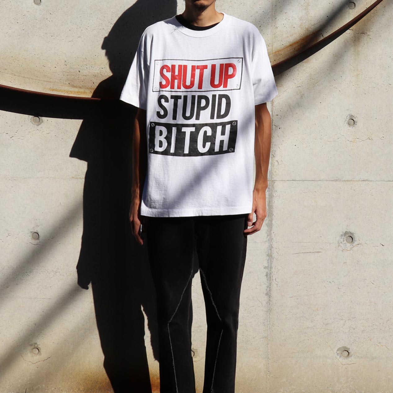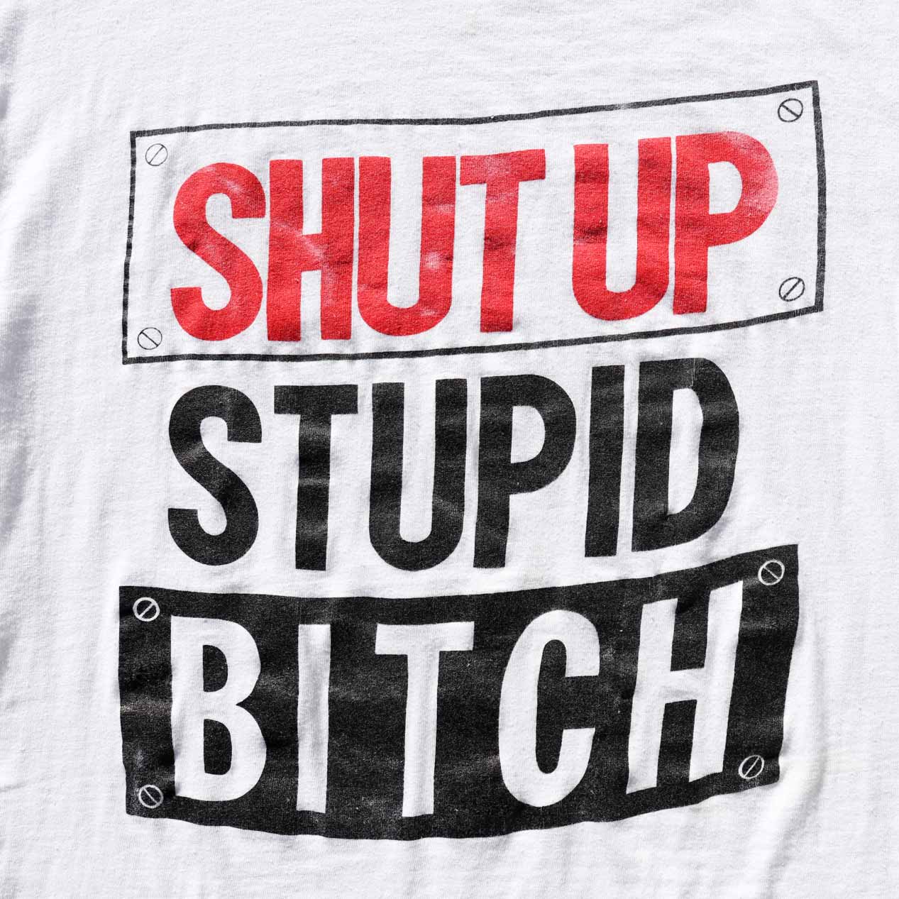 COMMENT : 90年代、SHUT UP STUPID BITCHプリントTシャツです。