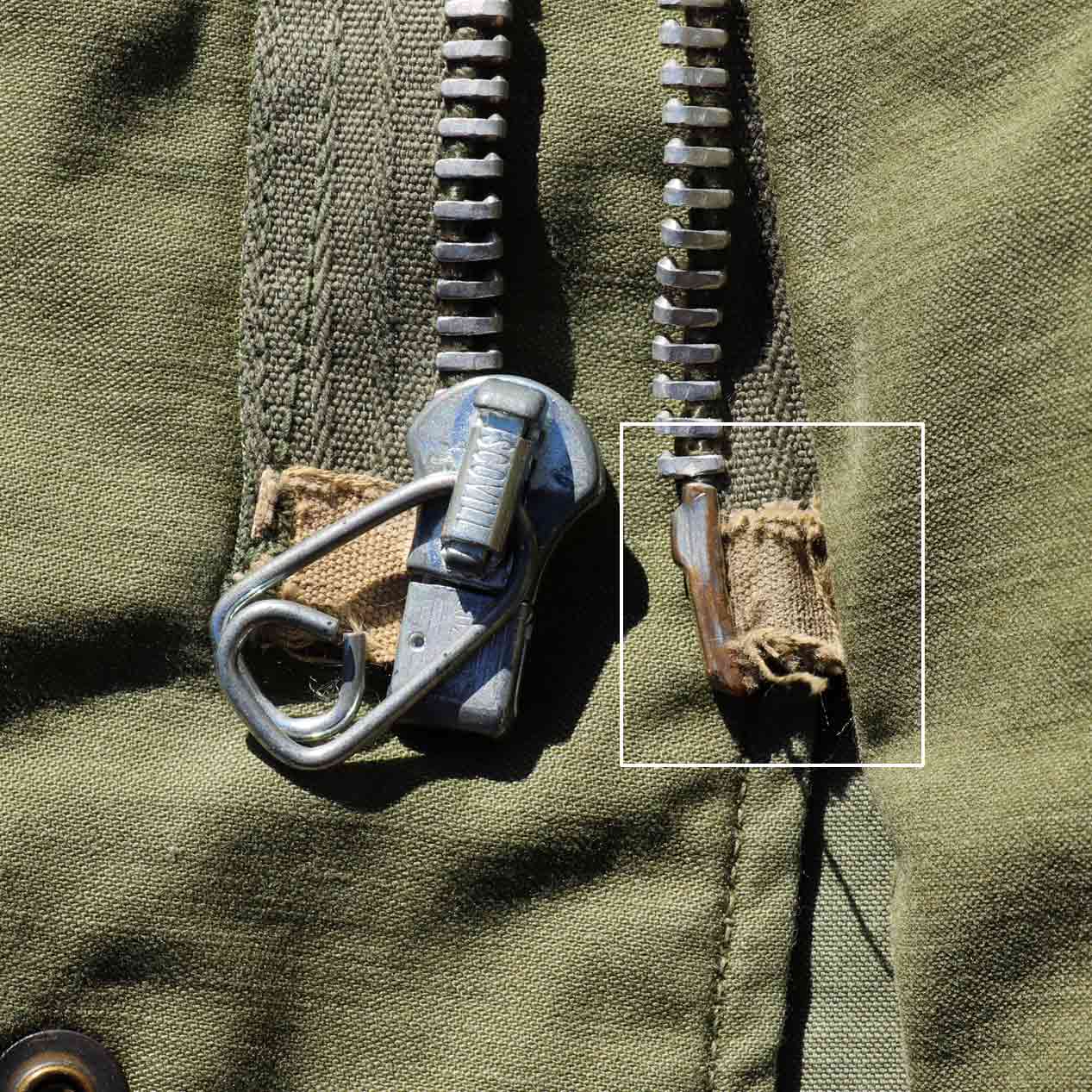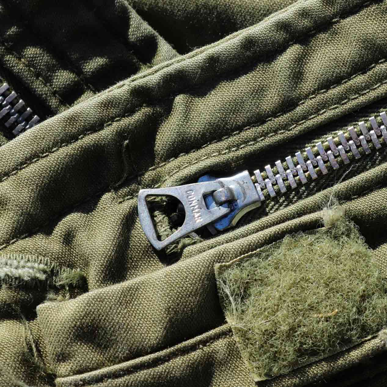 袖マチ付き、フロントSCOVILLアルミジップ、襟CONMARアルミジップ。