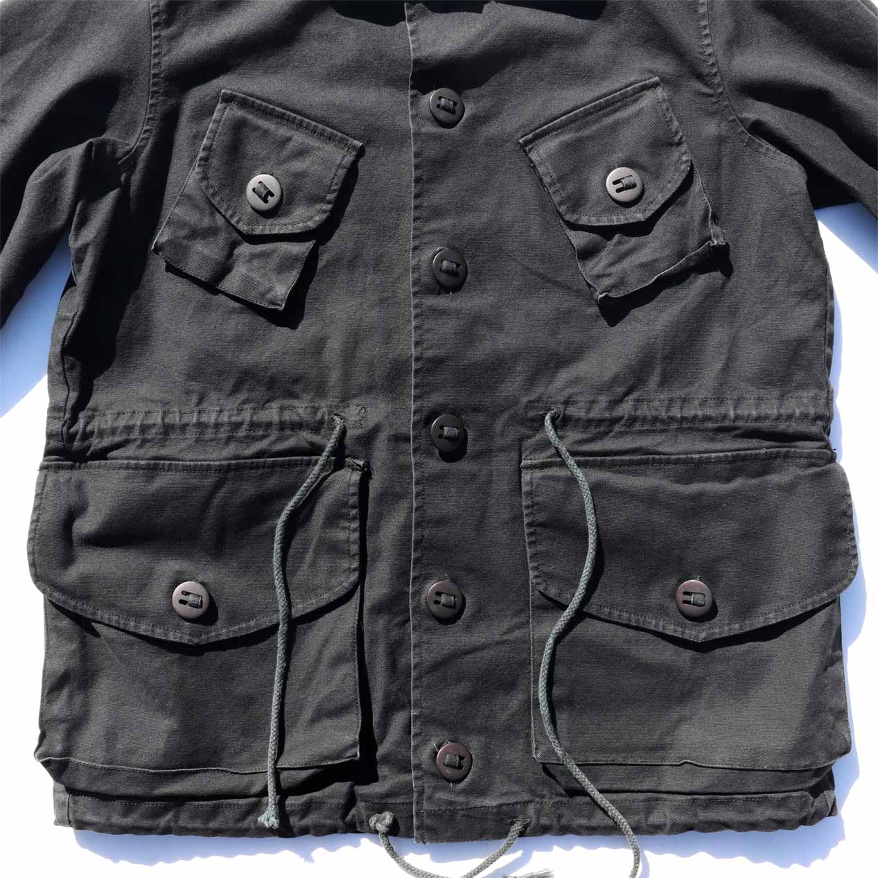 ボタンは全てパラシュートボタン、ウエストと裾にドローコード付き。