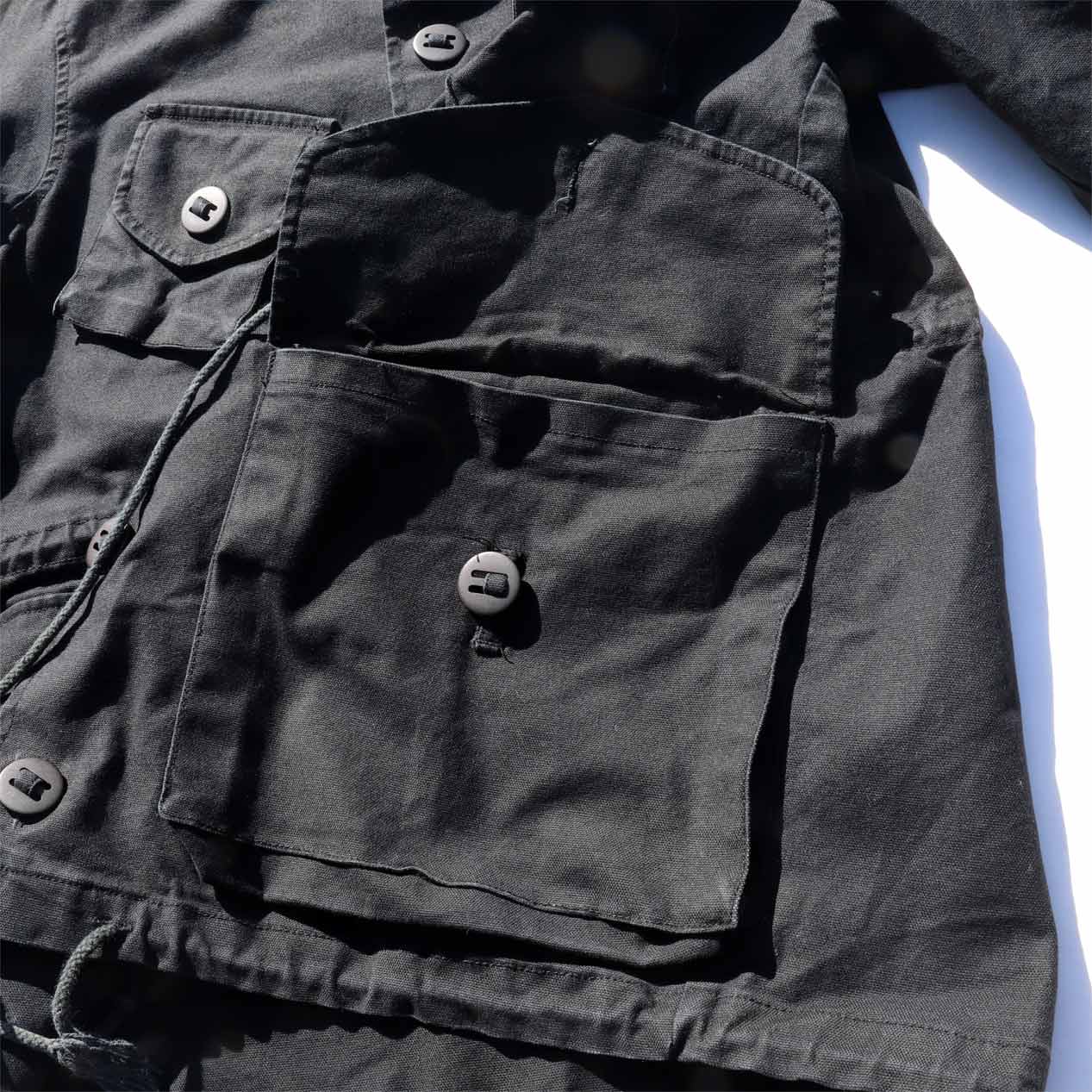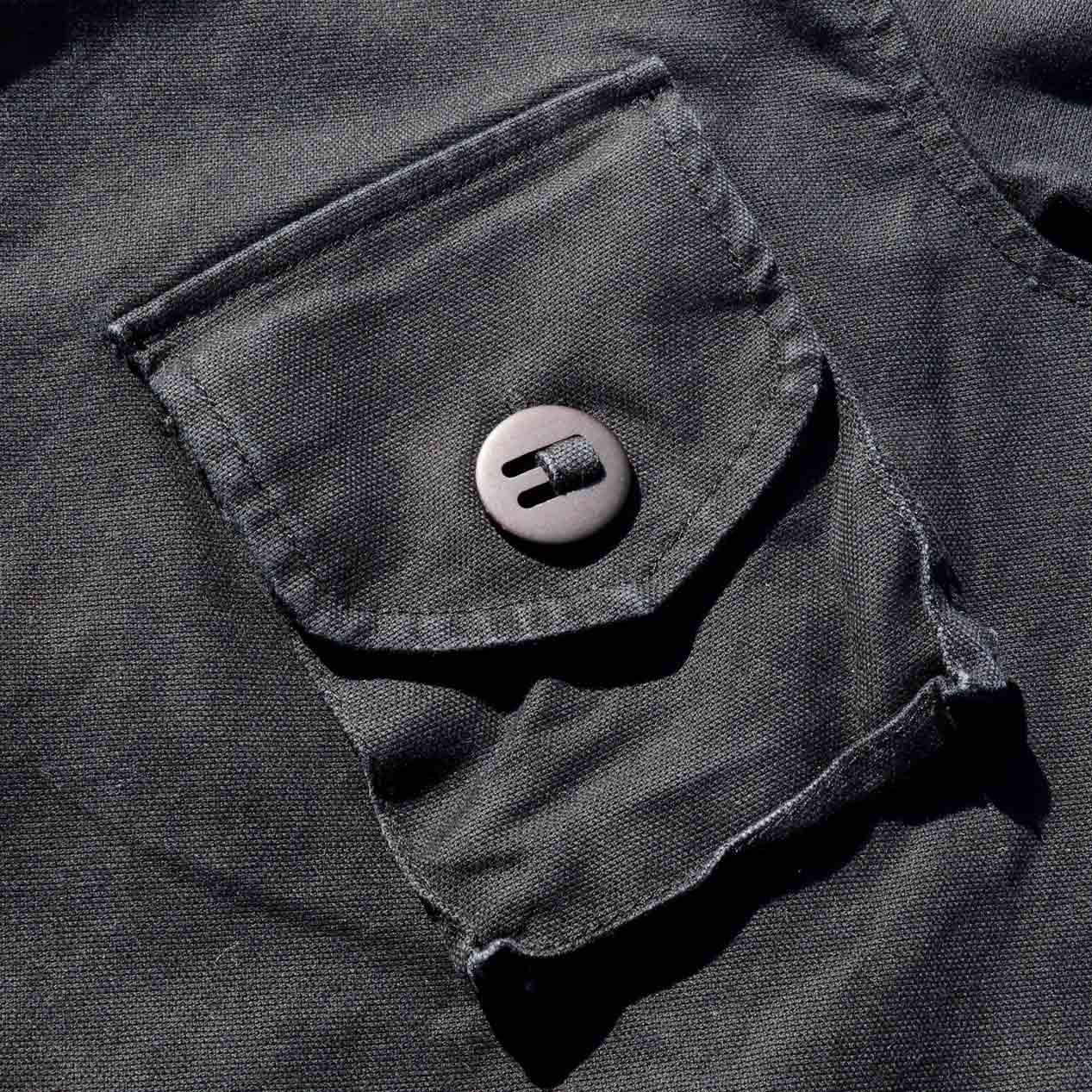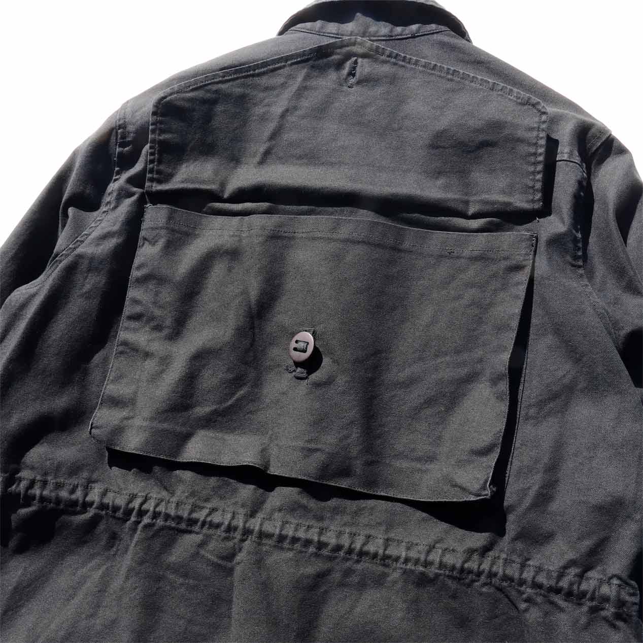 イギリス軍コンバットスモックをサンプリングしたようなミリタリーデザイン、バックには大ぶりのバックポケットが付くユニークな一品。