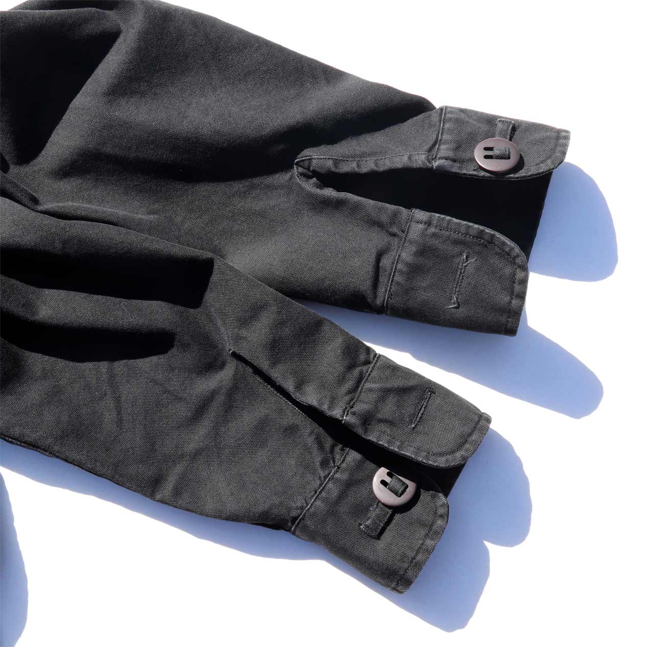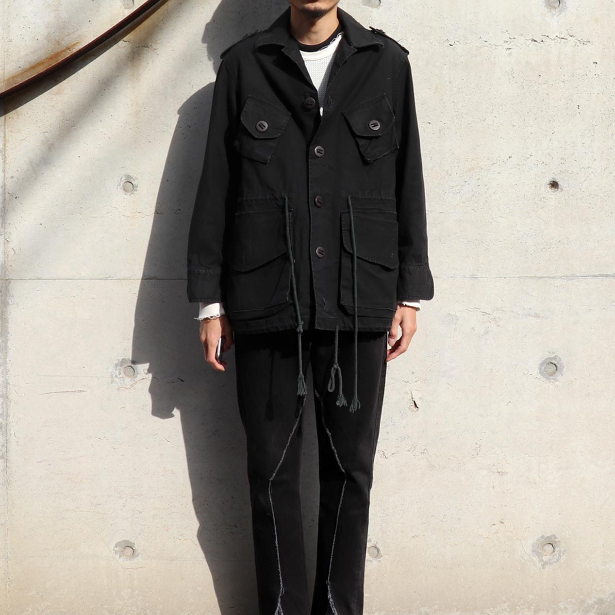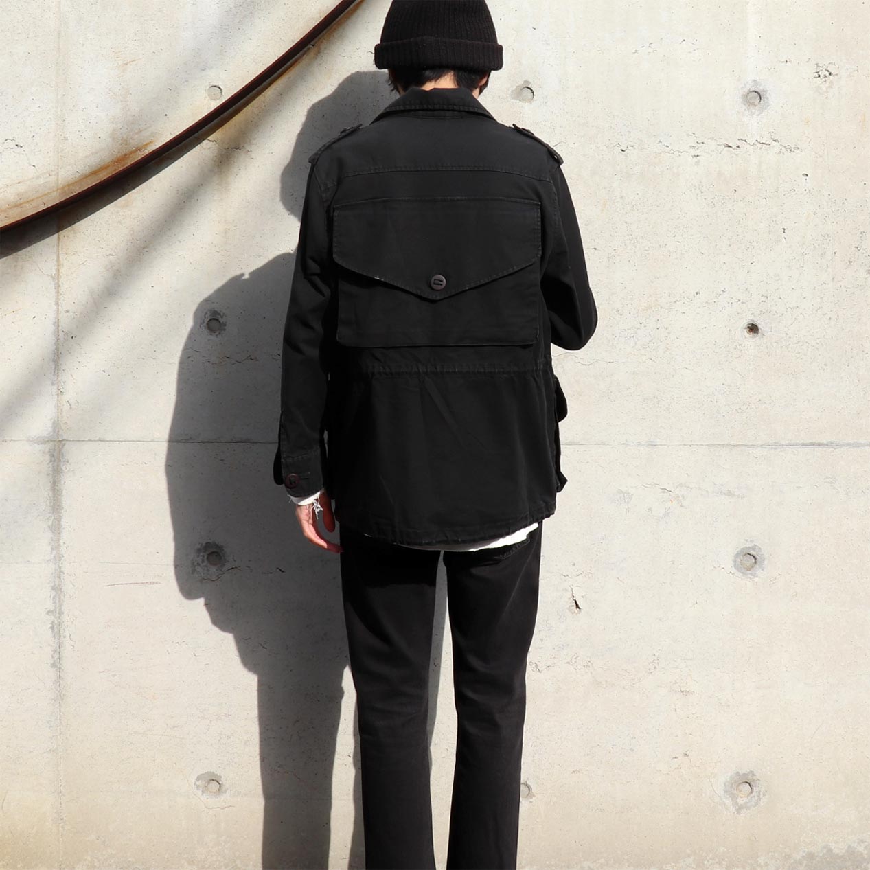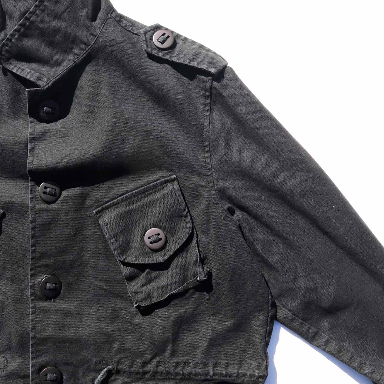 イギリス軍コンバットスモックをサンプリングしたようなミリタリーデザイン、バックには大ぶりのバックポケットが付くユニークな一品。
