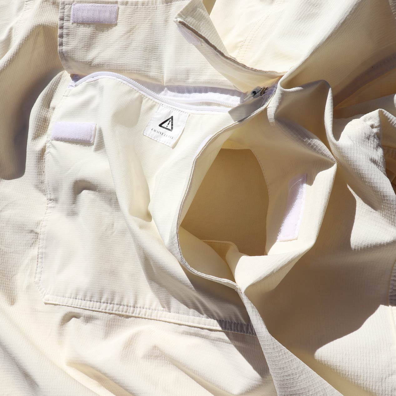 リップストップ生地、柔らかいオフホワイトカラー。