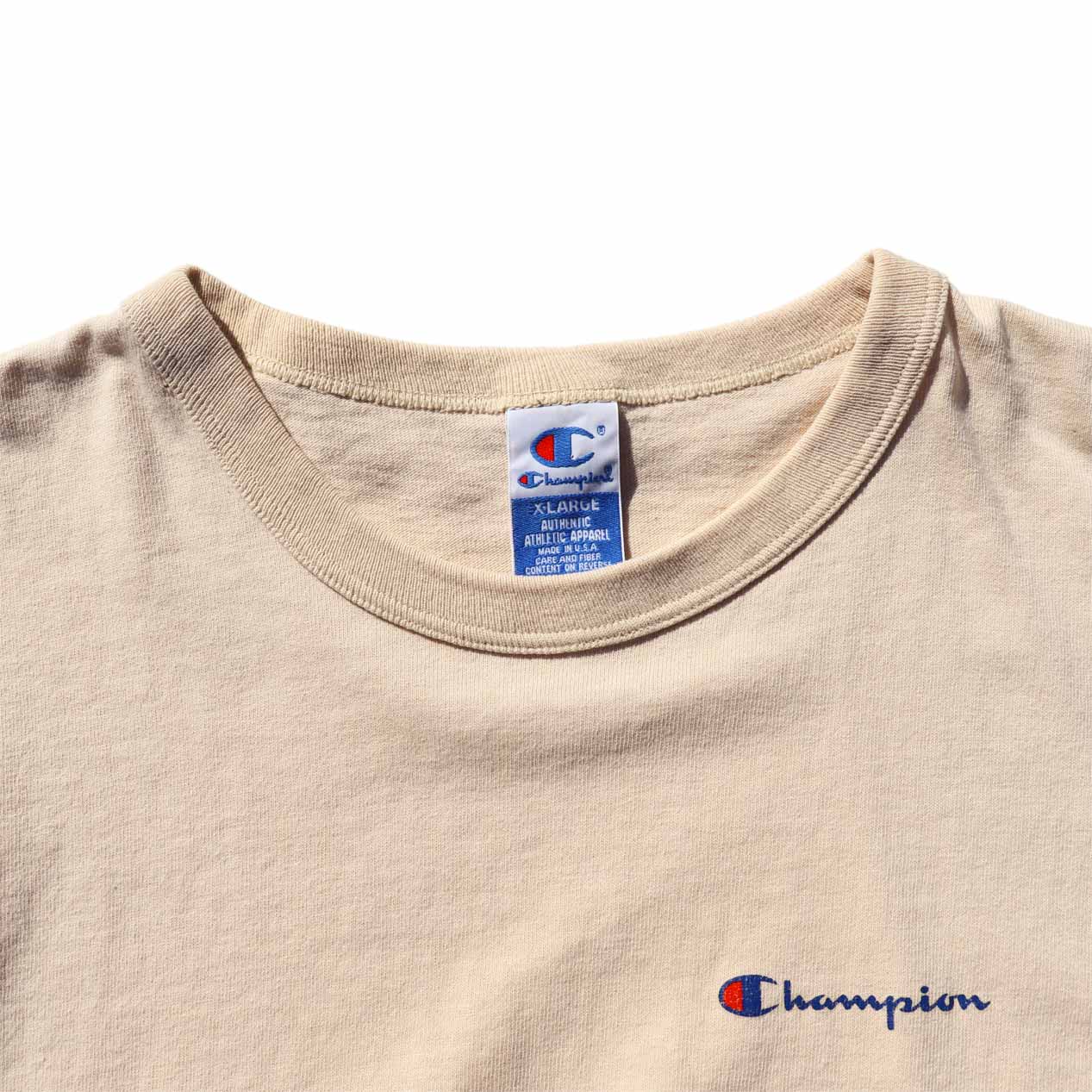 MODEL : CHAMPION USA製 オールコットン ベージュ スクリプトロゴ Tシャツ