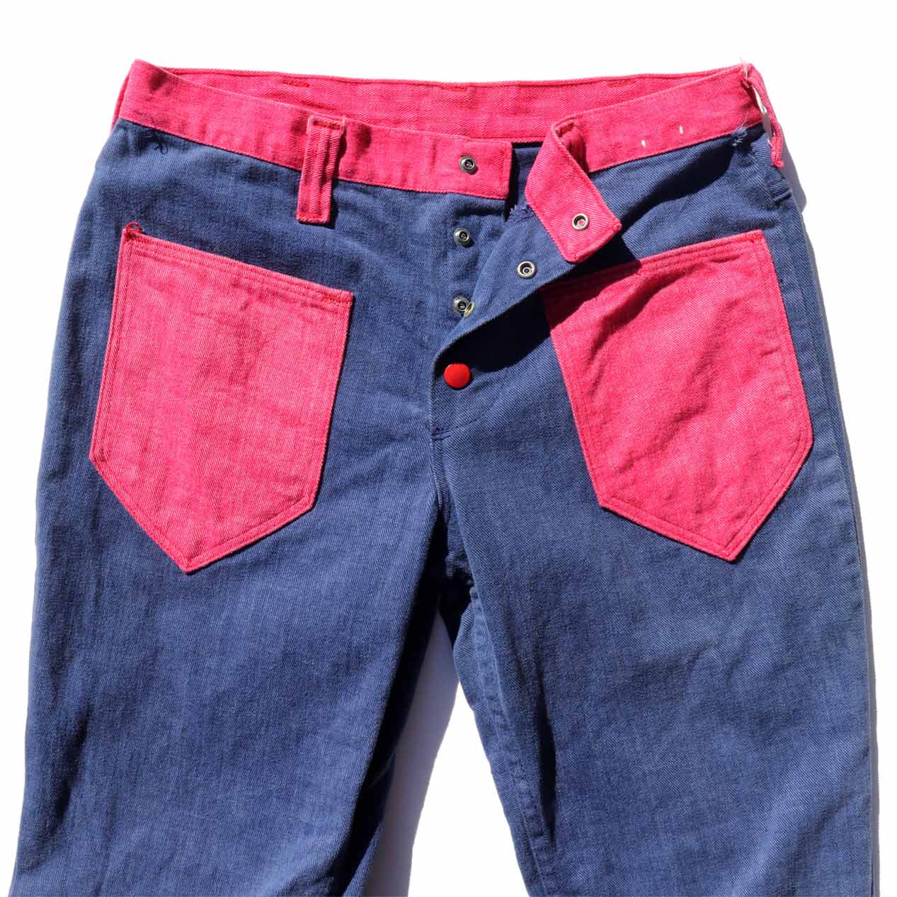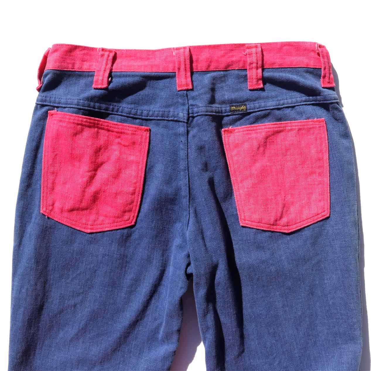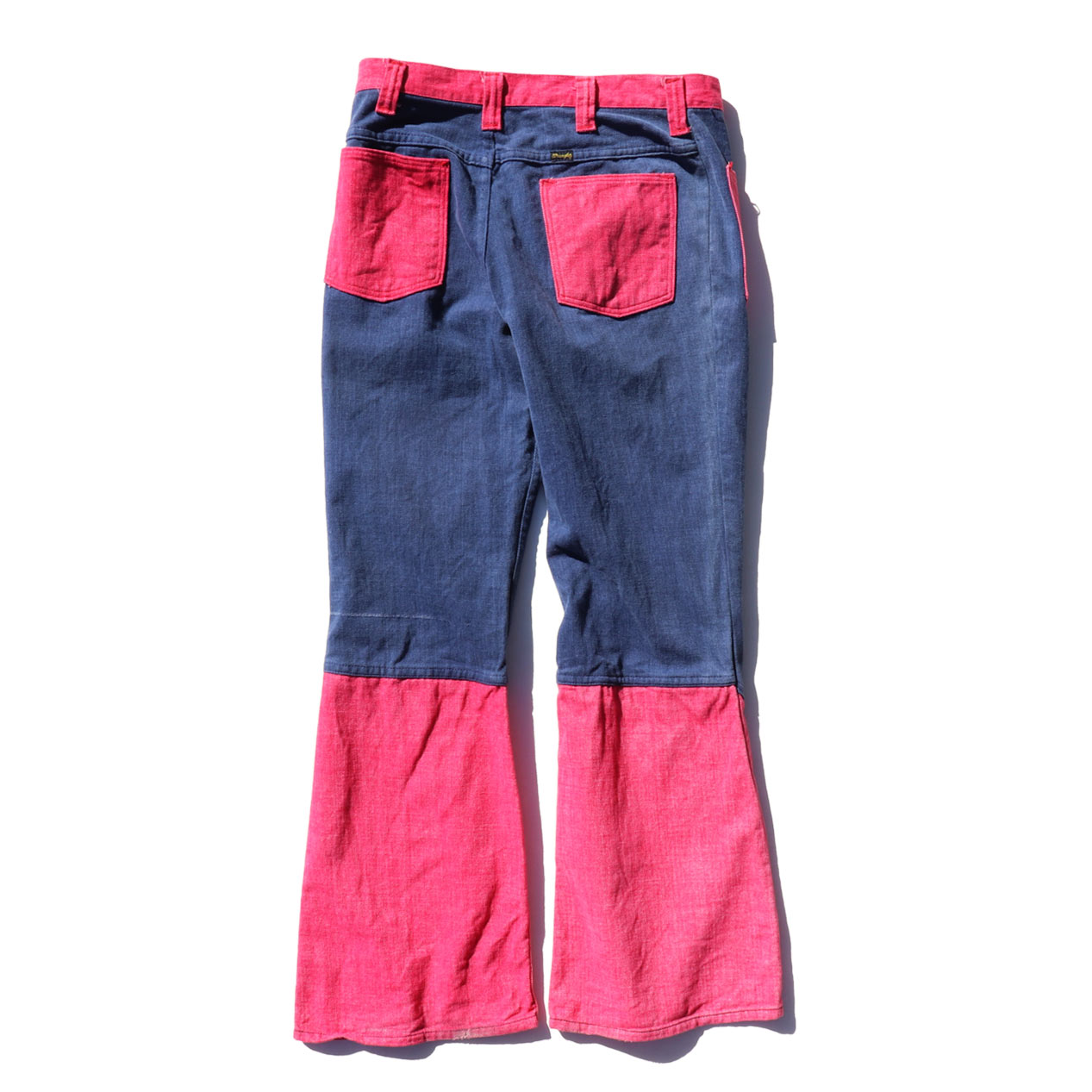 70’s WRANGLER USA製 ブルー×ピンク フレアデニムパンツ [W32]