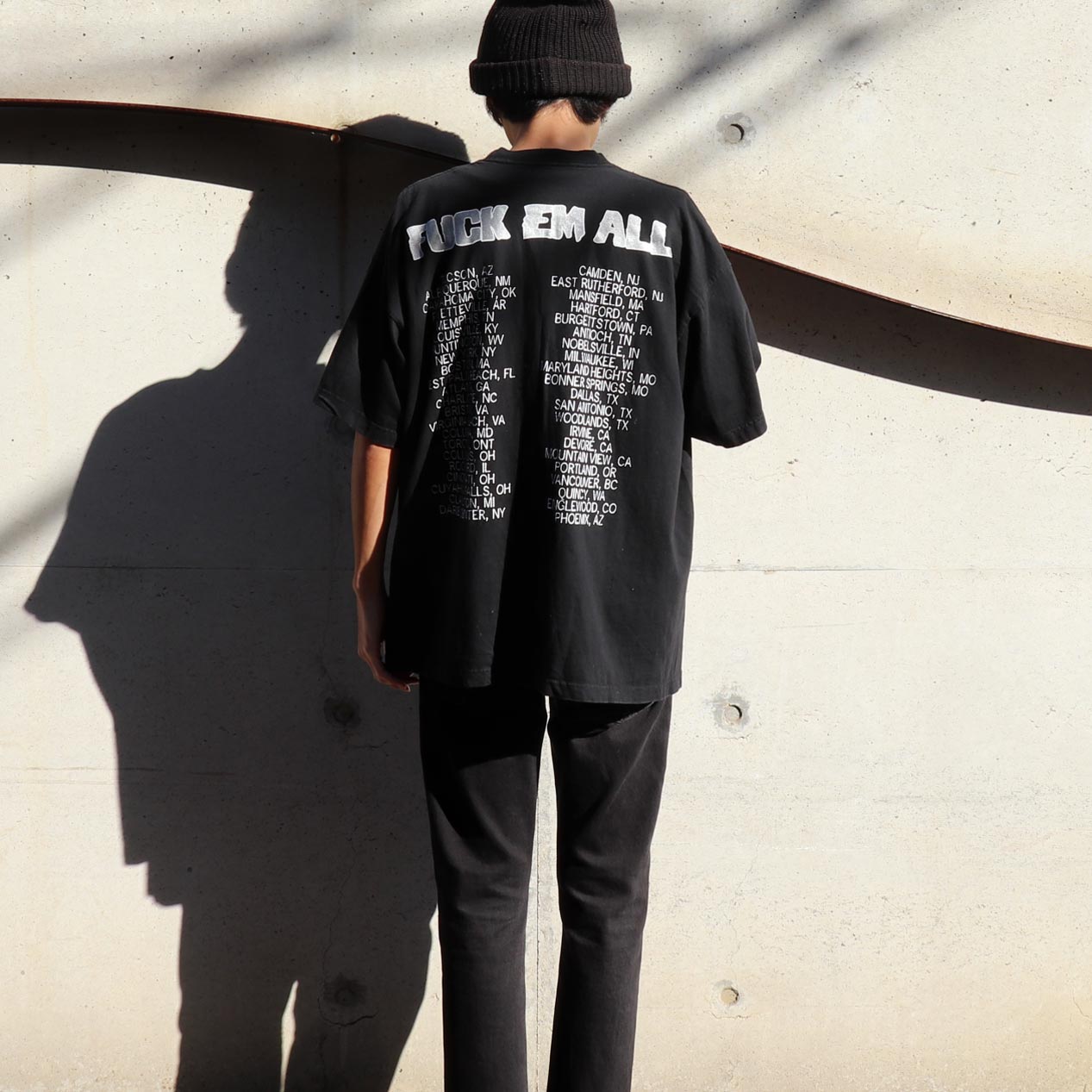MODEL : JERRY CANTRELL “BOGGY DEPOT / FUCK EM ALL” Tシャツ MANUFACTURE : Made In El Salvador AGE : 90's SIZE : XL COLOR : ブラック MATERIAL : コットン 100% COMMENT : 90年代、ジェリーカントレルのプリントTシャツです。