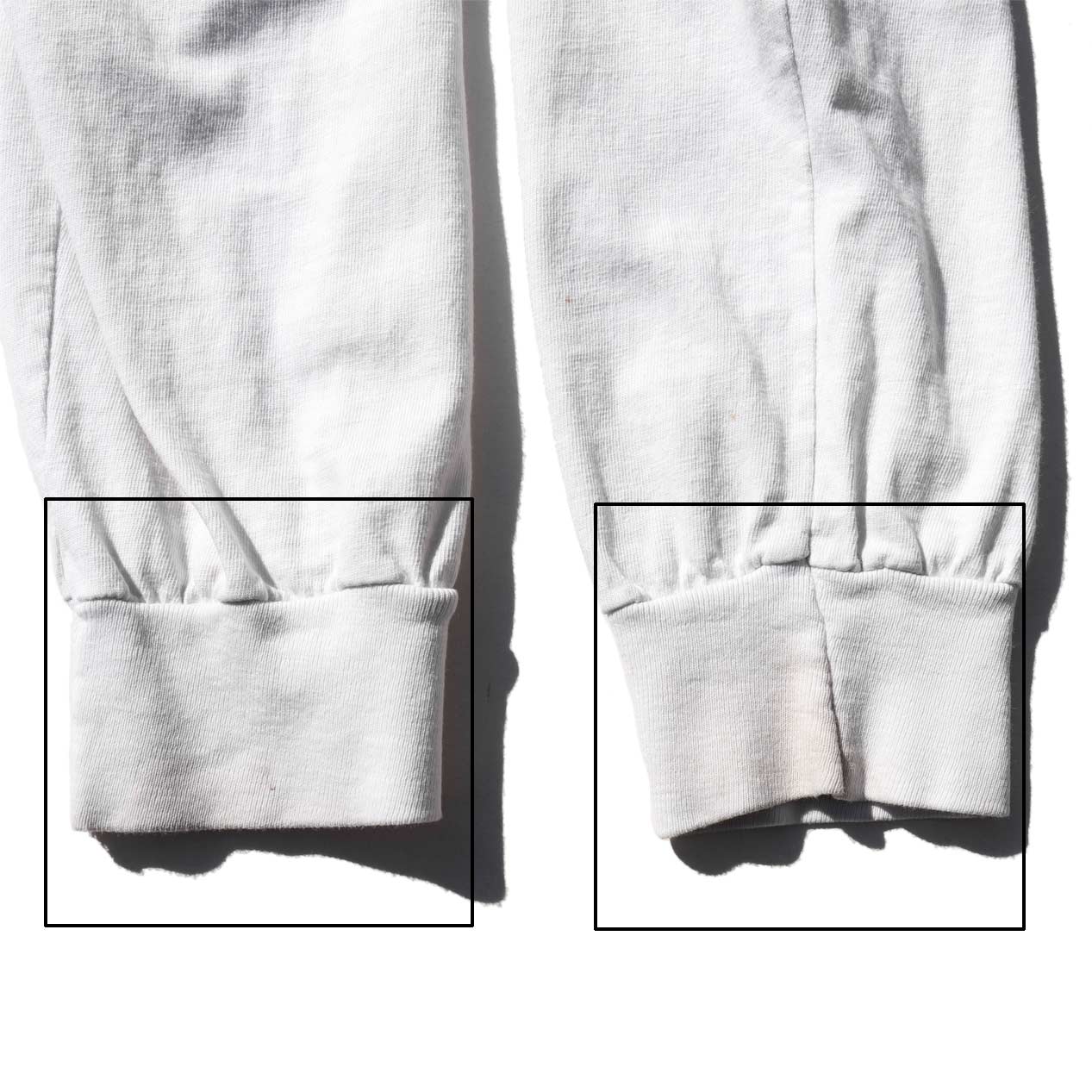 袖先リブ、裾縫製はシングルステッチです。