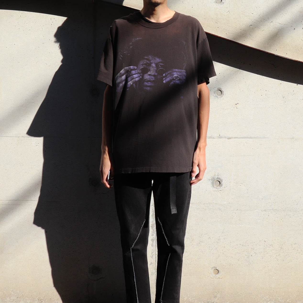 擦れたプリントにハードなフェードボディの雰囲気系ジミヘンTEE。