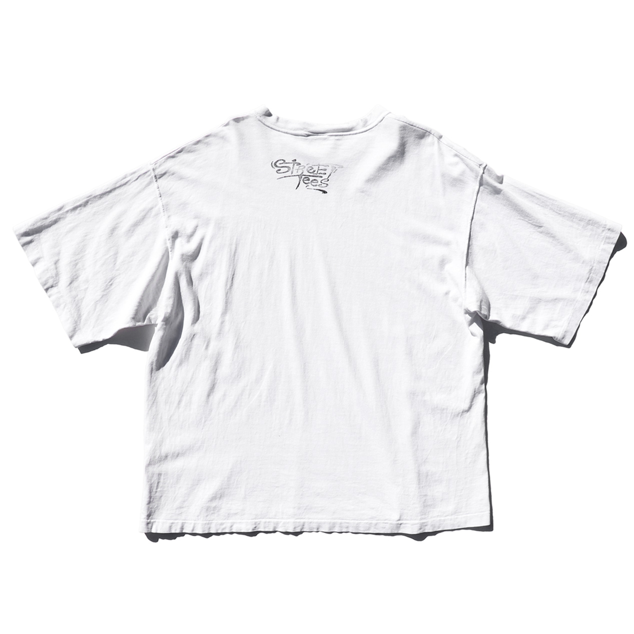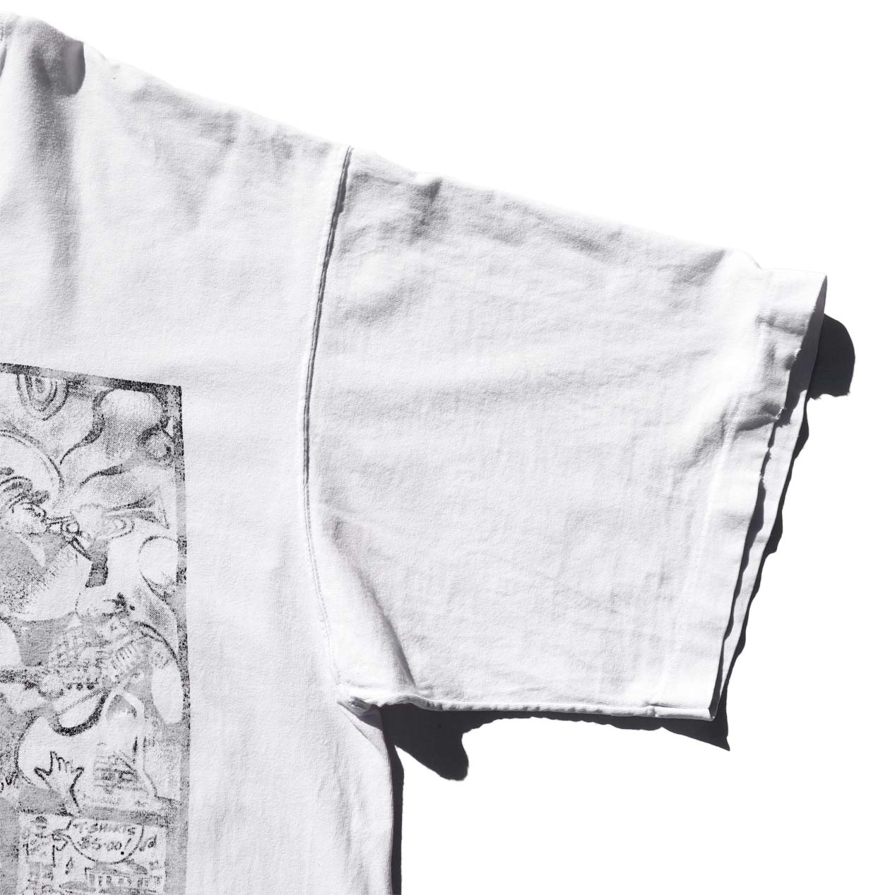 ジャズ的な擦れたジャムセッショングラフィック、身幅・袖ともに非常にワイドなルーズフィットシルエット。