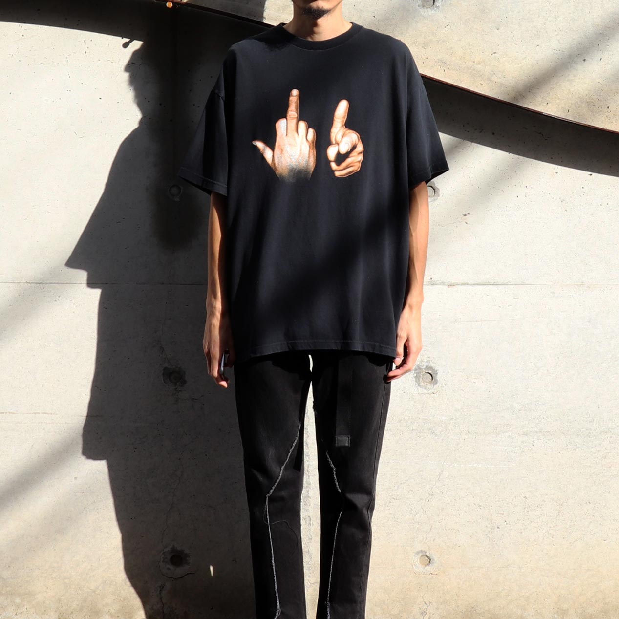 ハンドジェスチャーではこれ以上ない分かりやすさのFUCK YOUグラフィック。