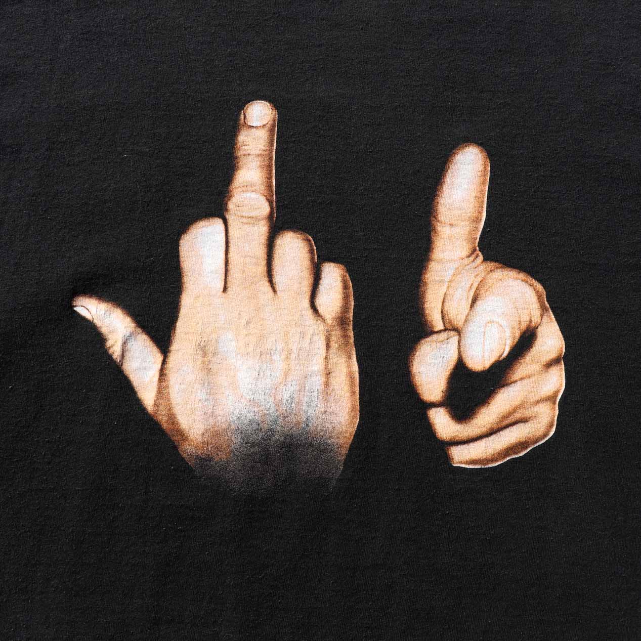 ハンドジェスチャーではこれ以上ない分かりやすさのFUCK YOUグラフィック。
