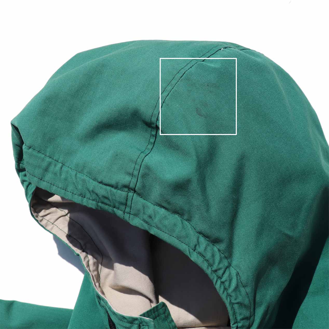 ・フロント : フードに薄い汚れ、右ハンドポケットに小穴