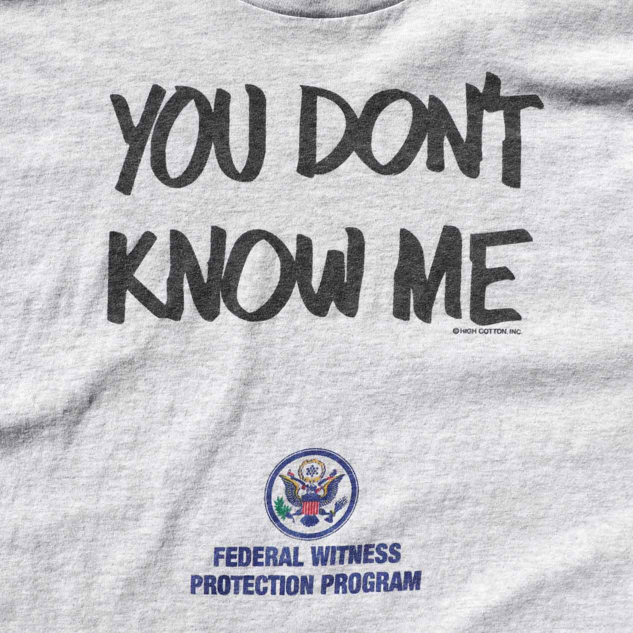 MODEL : YOU DON’T KNOW ME Tシャツ MANUFACTURE : Made In Honduras AGE : 90's~ SIZE : XL COLOR : 杢グレー MATERIAL : コットン 99% ポリエステル 1% COMMENT : 90年代、YOU DON’T KNOW MEプリントTシャツです。