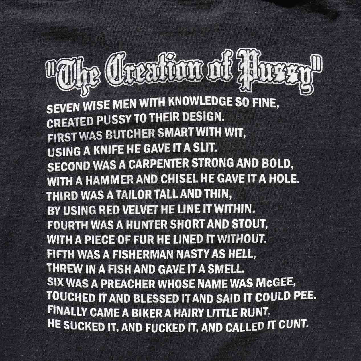 ブラックジョーク的ポエムのTHE CREATION OF PUSSY TEE。