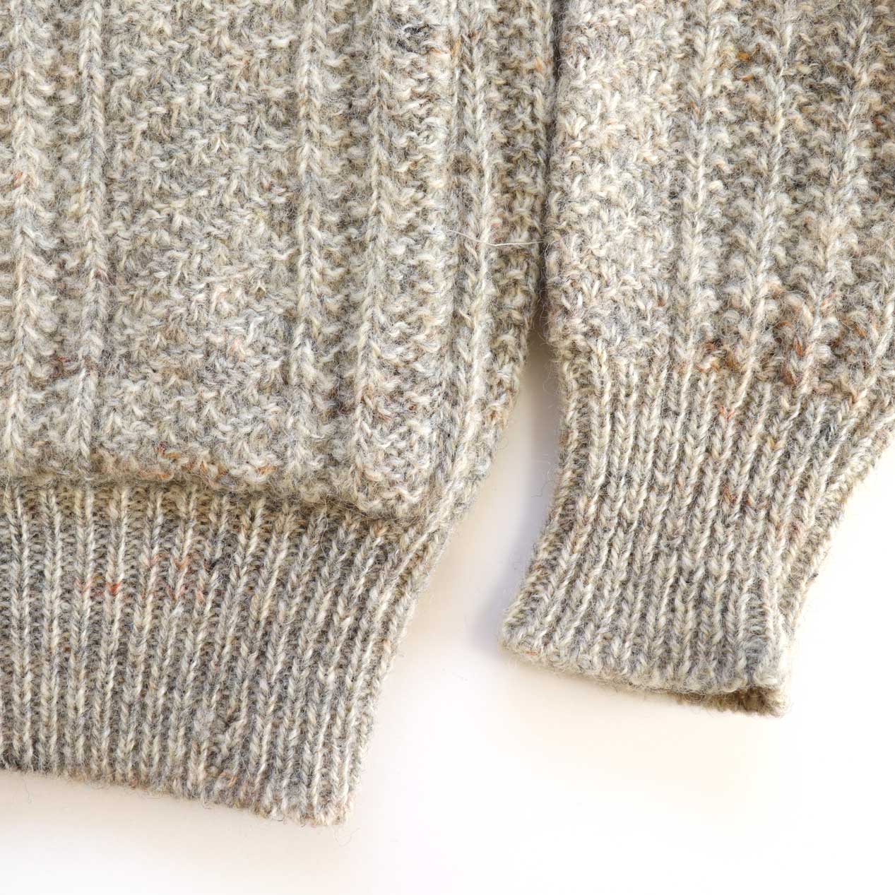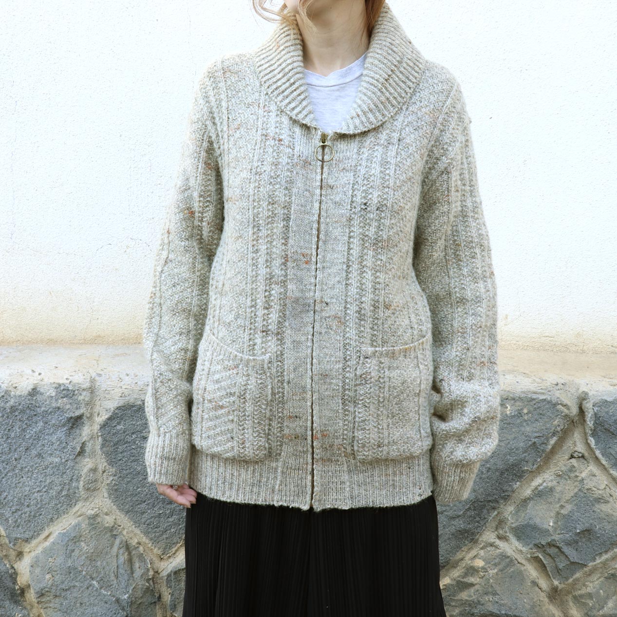 ショールカラーやフロントジップ、パッチポケットなどカウチンニット風のデザイン。