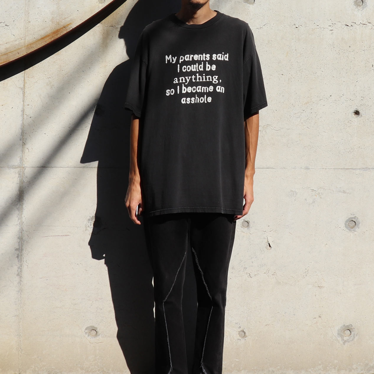MODEL : I BECAME AN ASSHOLE Tシャツ MANUFACTURE : Made In Mexico AGE : 90's SIZE : XL COLOR : ブラック MATERIAL : コットン 100% COMMENT : 90年代、ASSHOLEプリントTシャツです。
