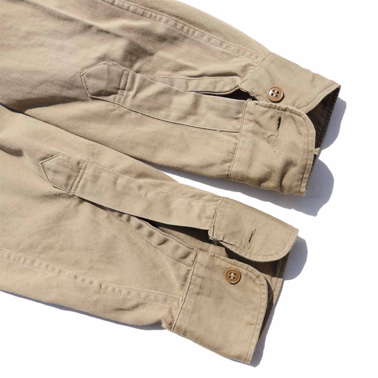 中肉チノツイル生地、素材表記はありませんがコットン100%で間違いありません。
