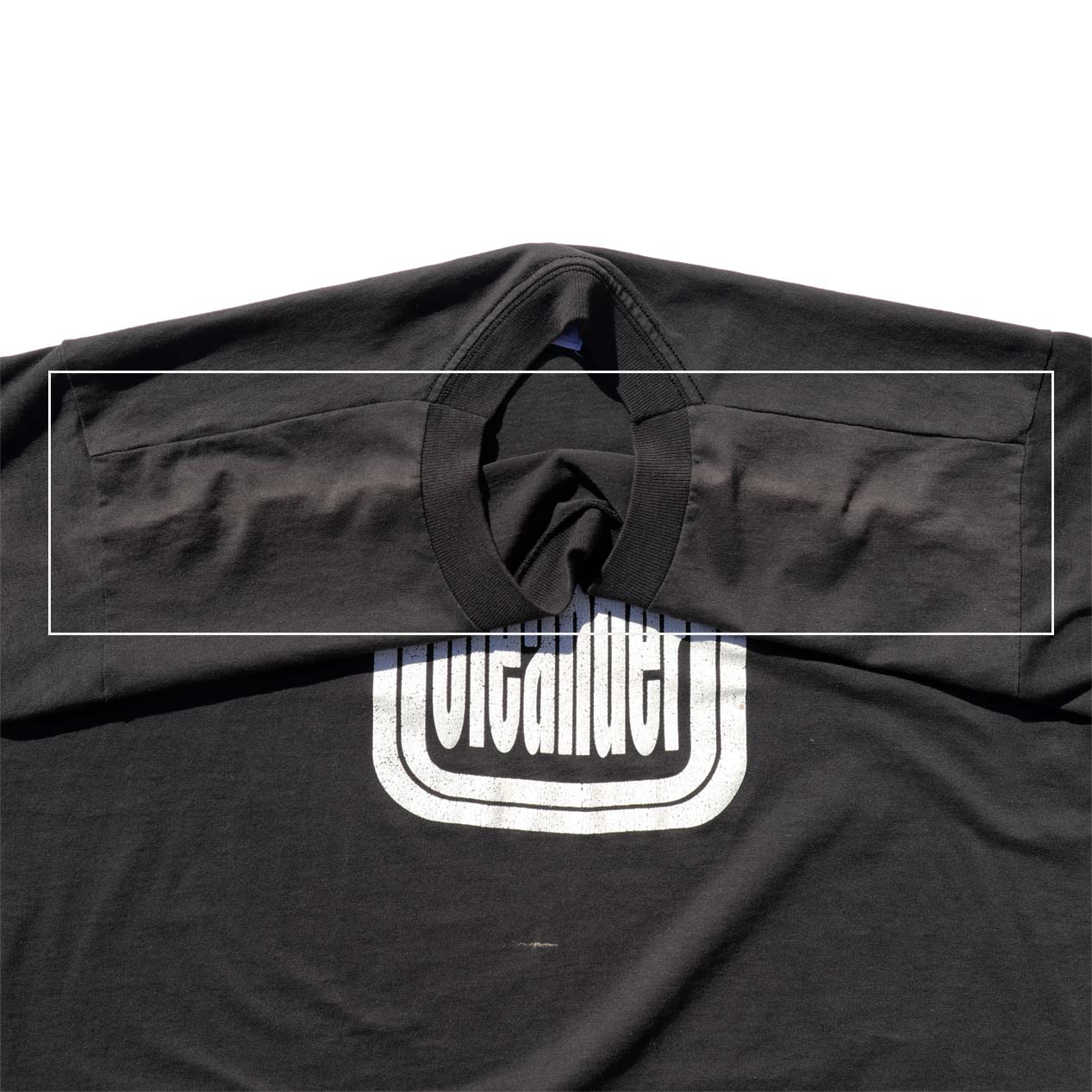 ・フロント : 両肩に色褪せ、プリント下部に汚れ