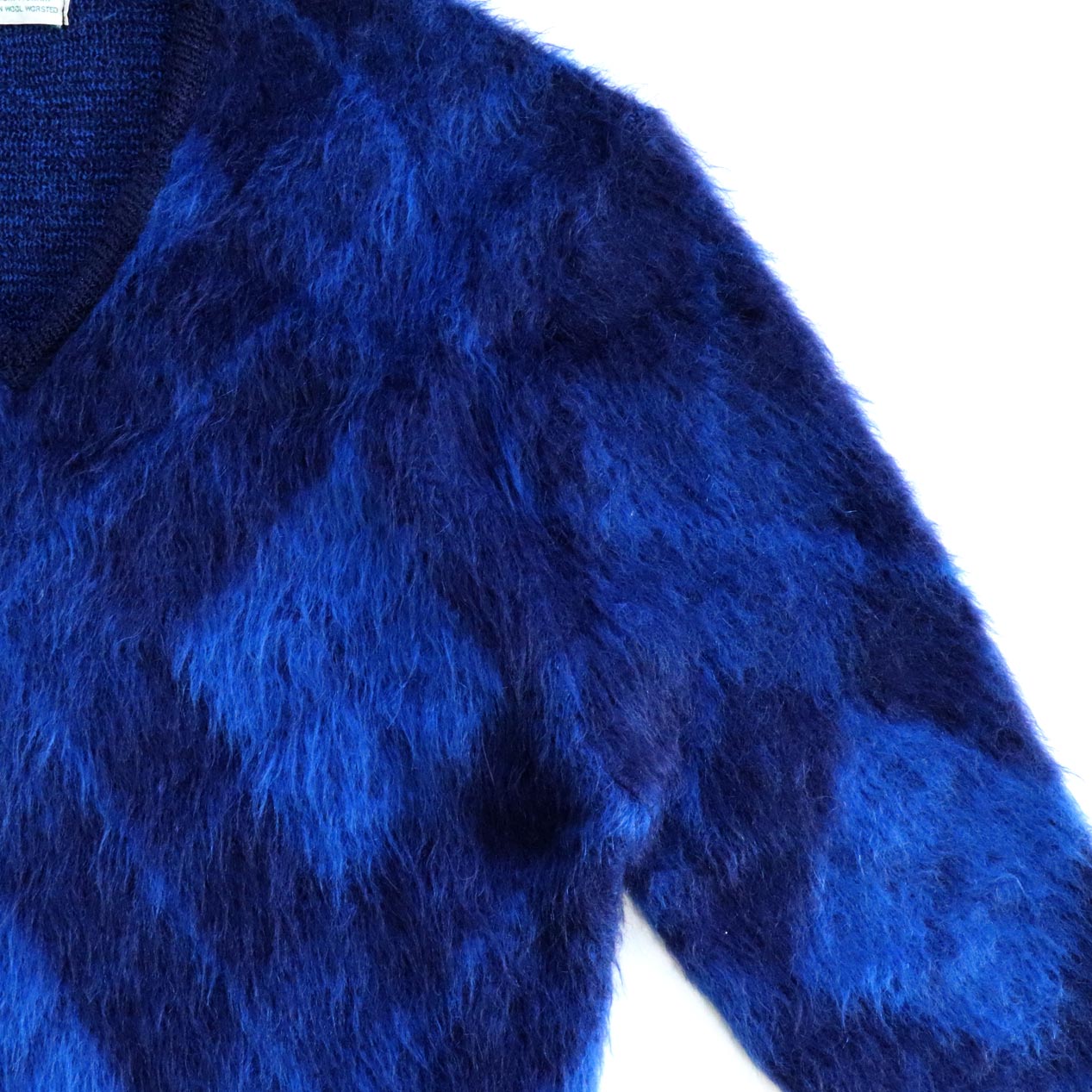 毛足も非常に長く、シャドーがかったブルーベースのアーガイル柄が最高にクールな一枚。