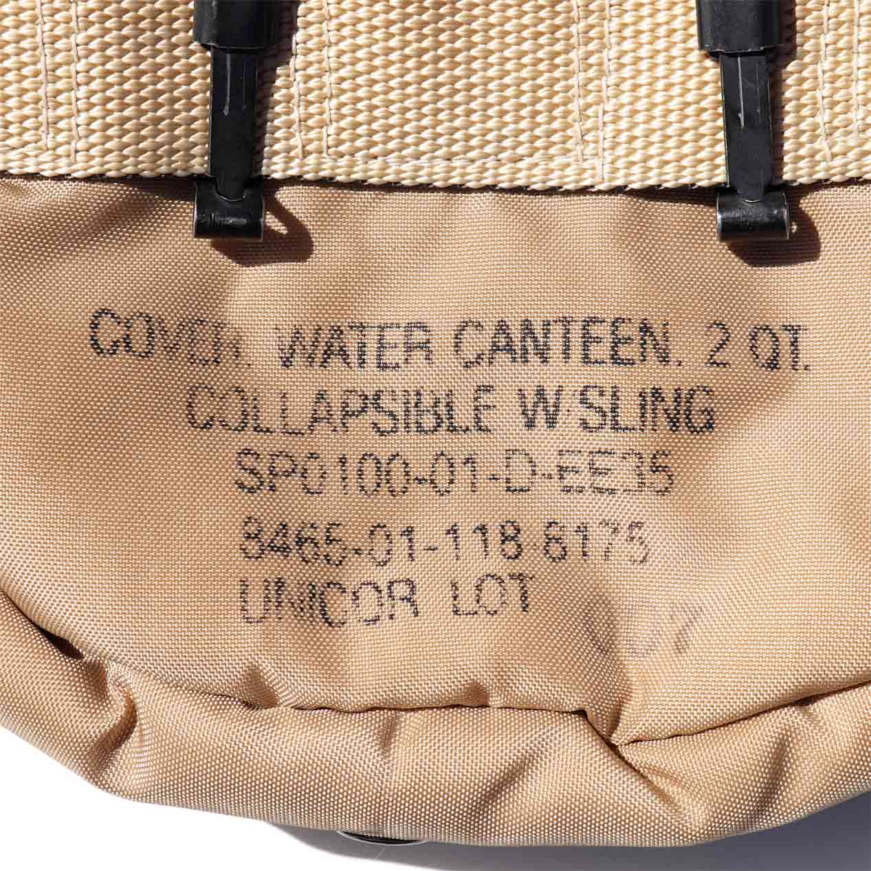 MODEL : U.S. MILITARY 2 QT Water Canteen Cover MANUFACTURE : --- AGE : 00's SIZE : --- COLOR : タン MATERIAL : ナイロン COMMENT : 00年代、U.S. MILITARYのキャンティーンカバーです。