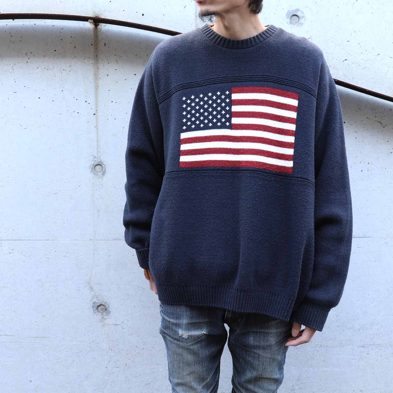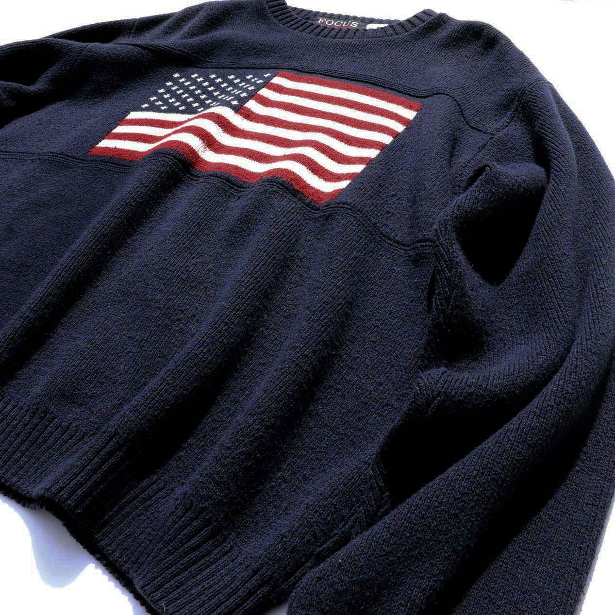 COMMENT : FOCUS AMERICAの星条旗柄ニットです。