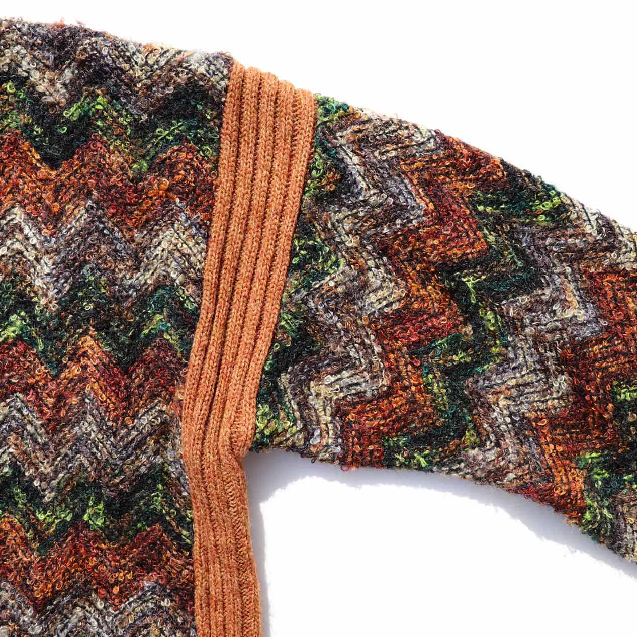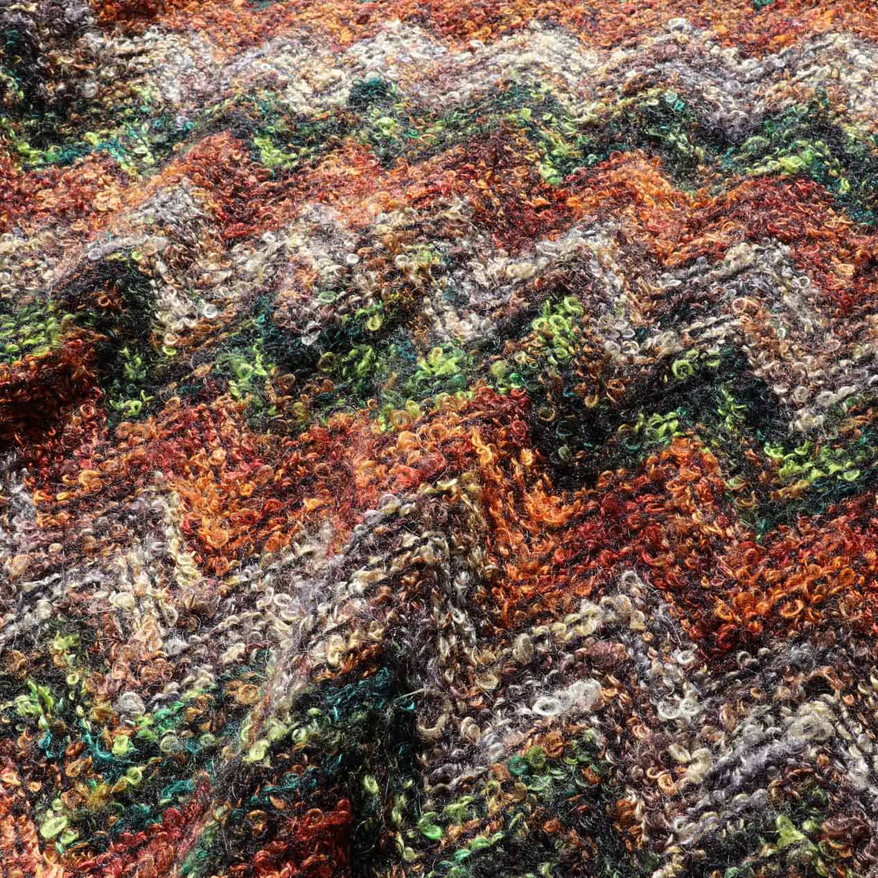 ループ状の編地とジグザグ柄がとてもキュートな雰囲気。