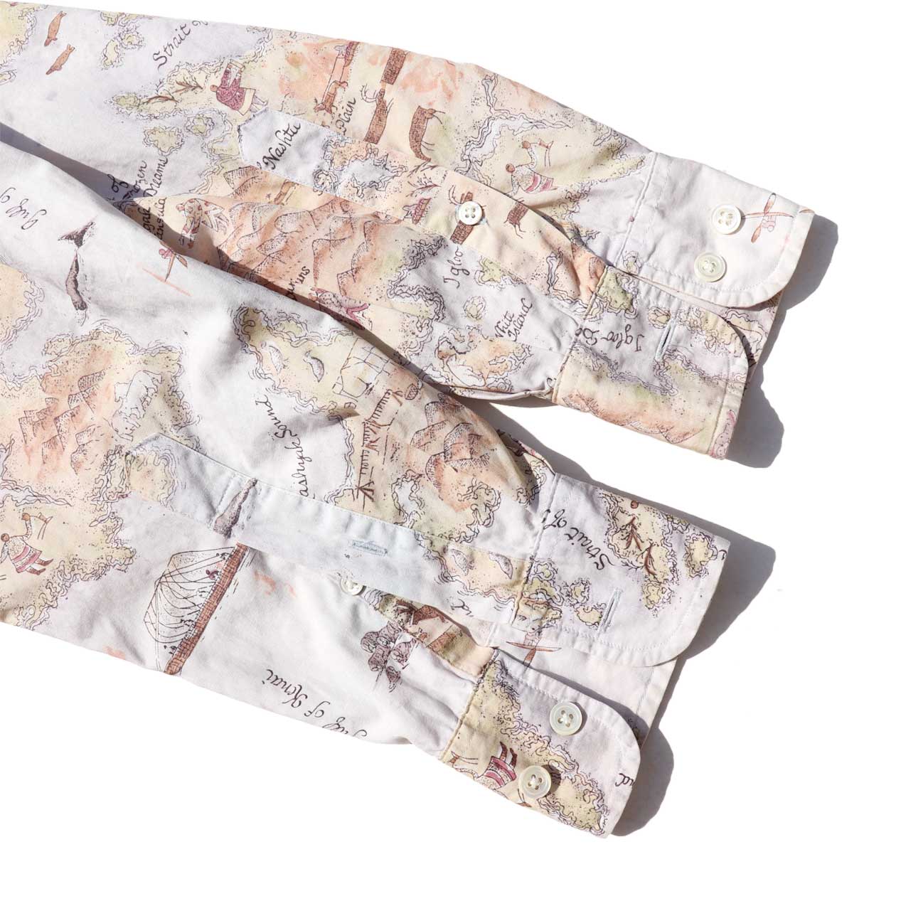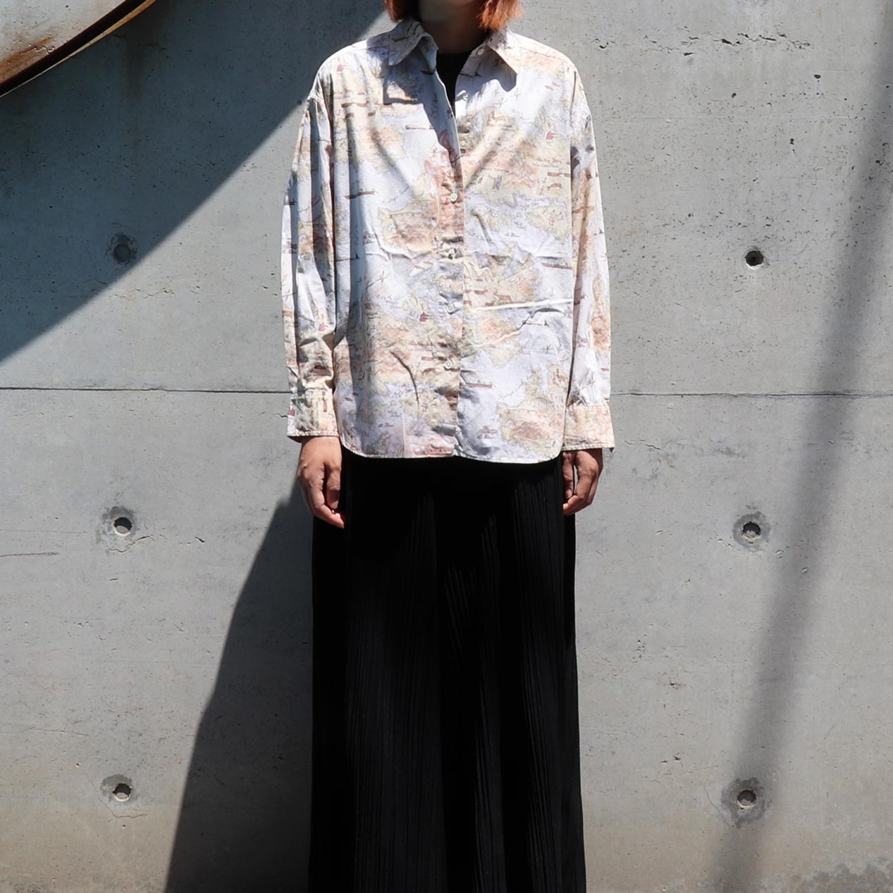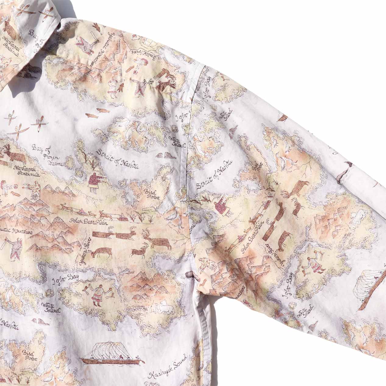ハリのあるコットンポプリン生地にレトロな地図柄が乗るL/Sシャツ。