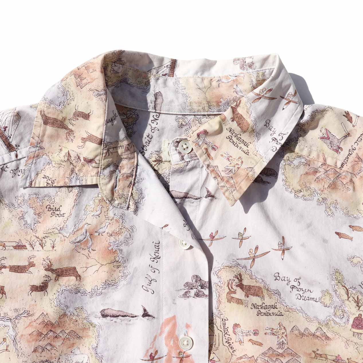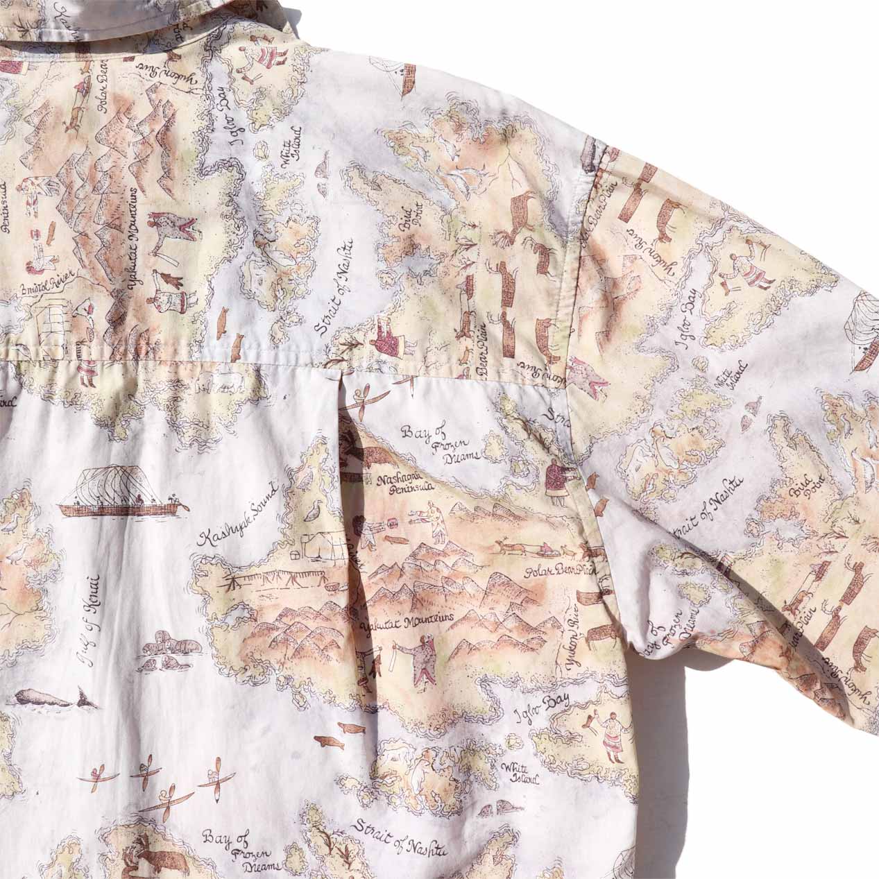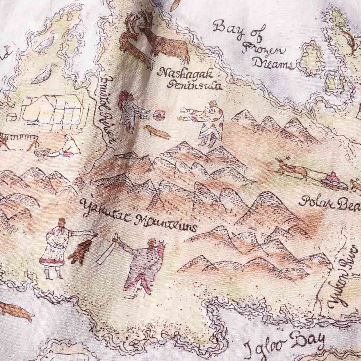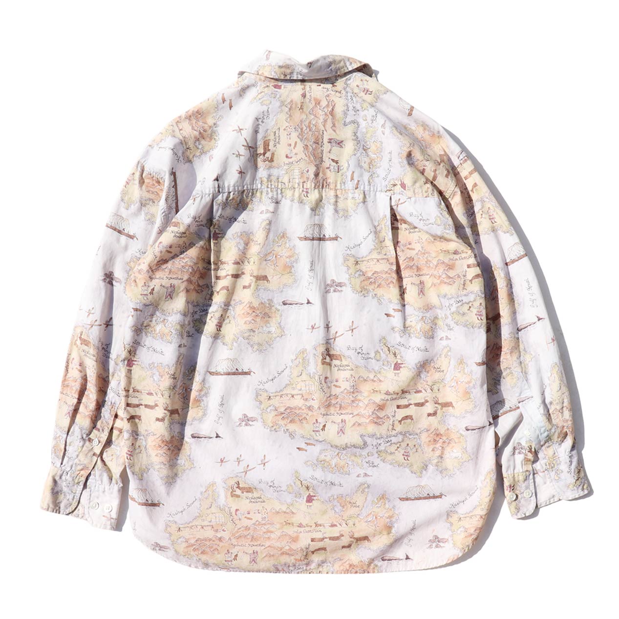 ハリのあるコットンポプリン生地にレトロな地図柄が乗るL/Sシャツ。