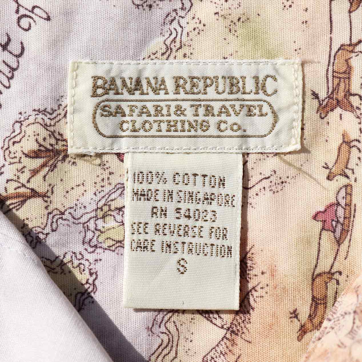 90’s BANANA REPUBLIC Map Pattern Cotton Poplin L/S Shirt [S]
