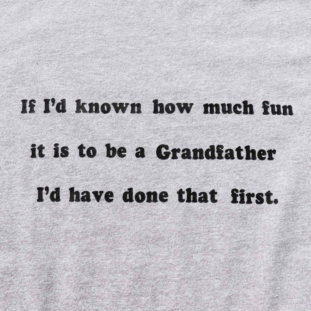 MODEL : SCREEN STARS “IT IS TO BE A GRANDFATHER” T-Shirt MANUFACTURE : Made In U.S.A. AGE : 90's SIZE : XXL COLOR : 杢グレー MATERIAL : コットン 50% ポリエステル 50% COMMENT : 90年代、スクリーンスターズのプリントTシャツです。