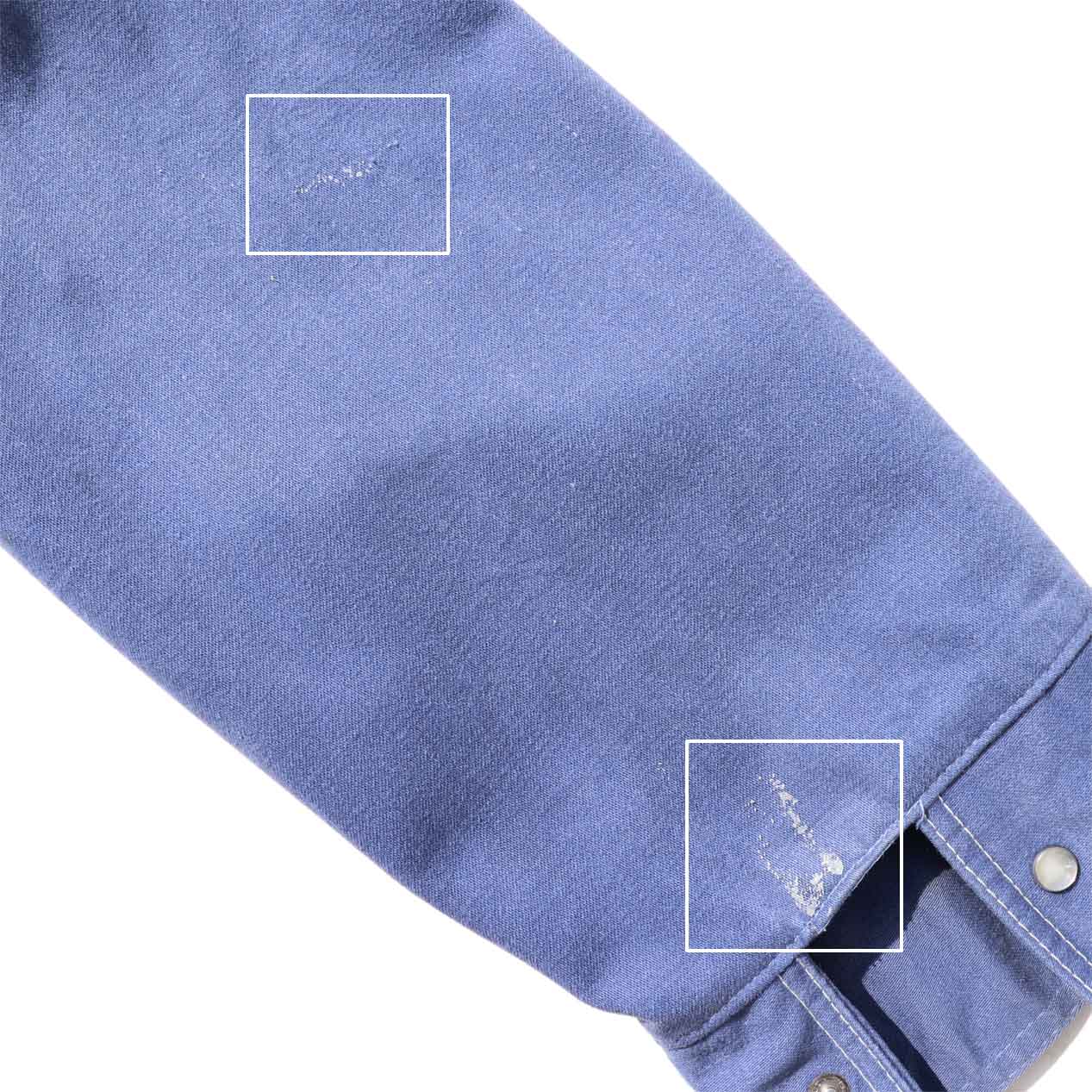 ・フロント : 最下部ボタン付近に汚れ、右胸ポケットにステッチ切れ