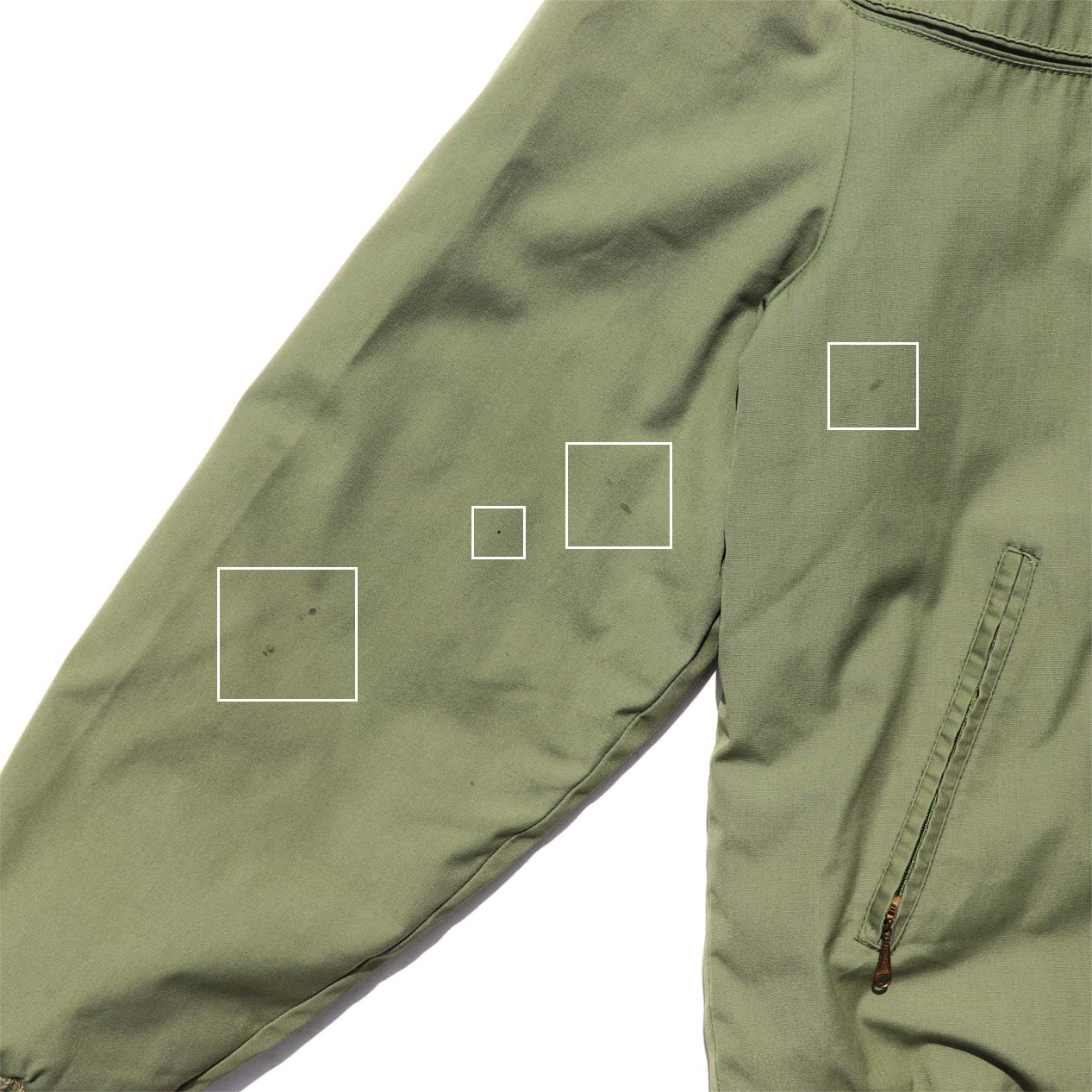 ・フロント、袖 : 右脇付近、右袖に汚れ
