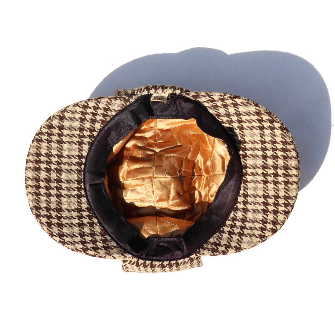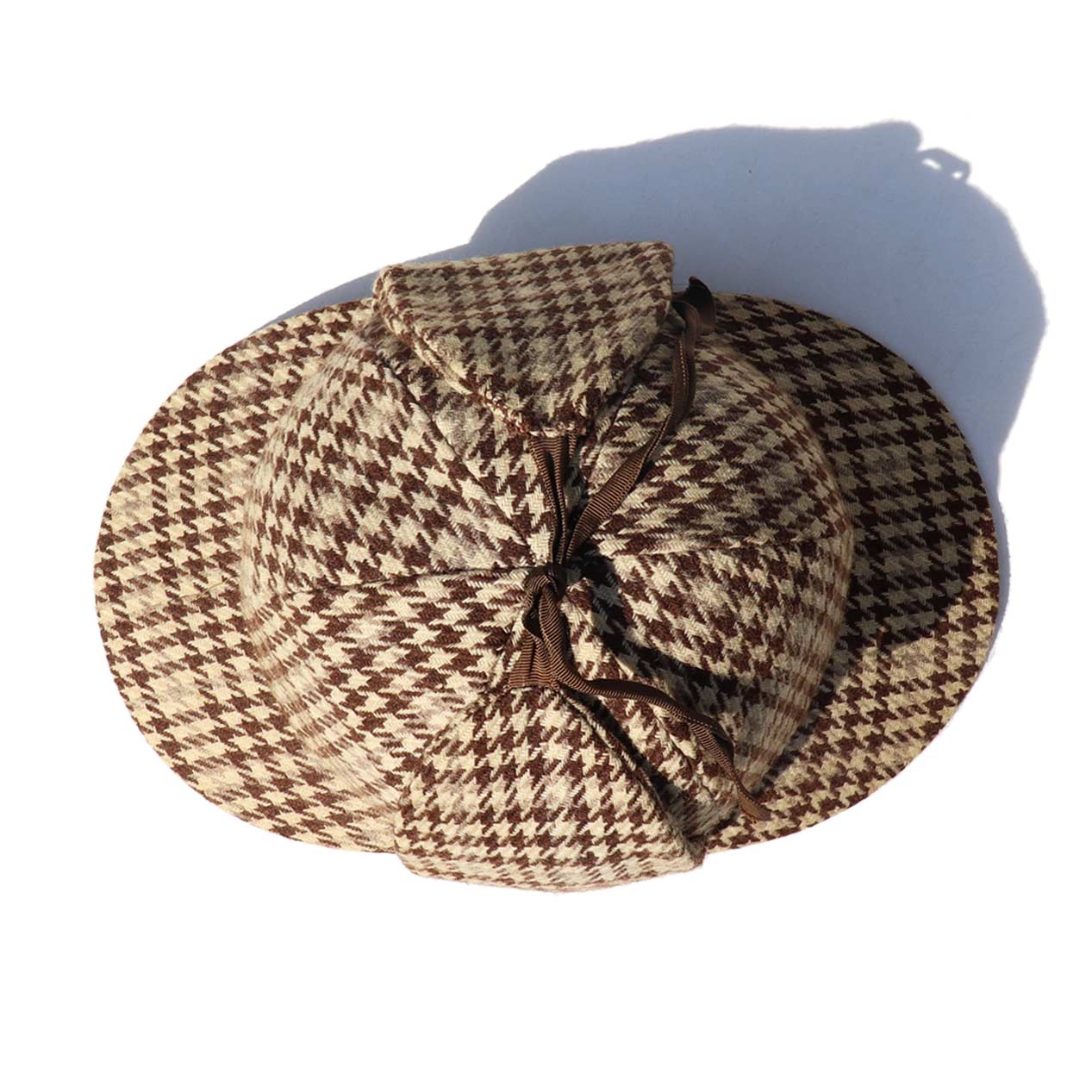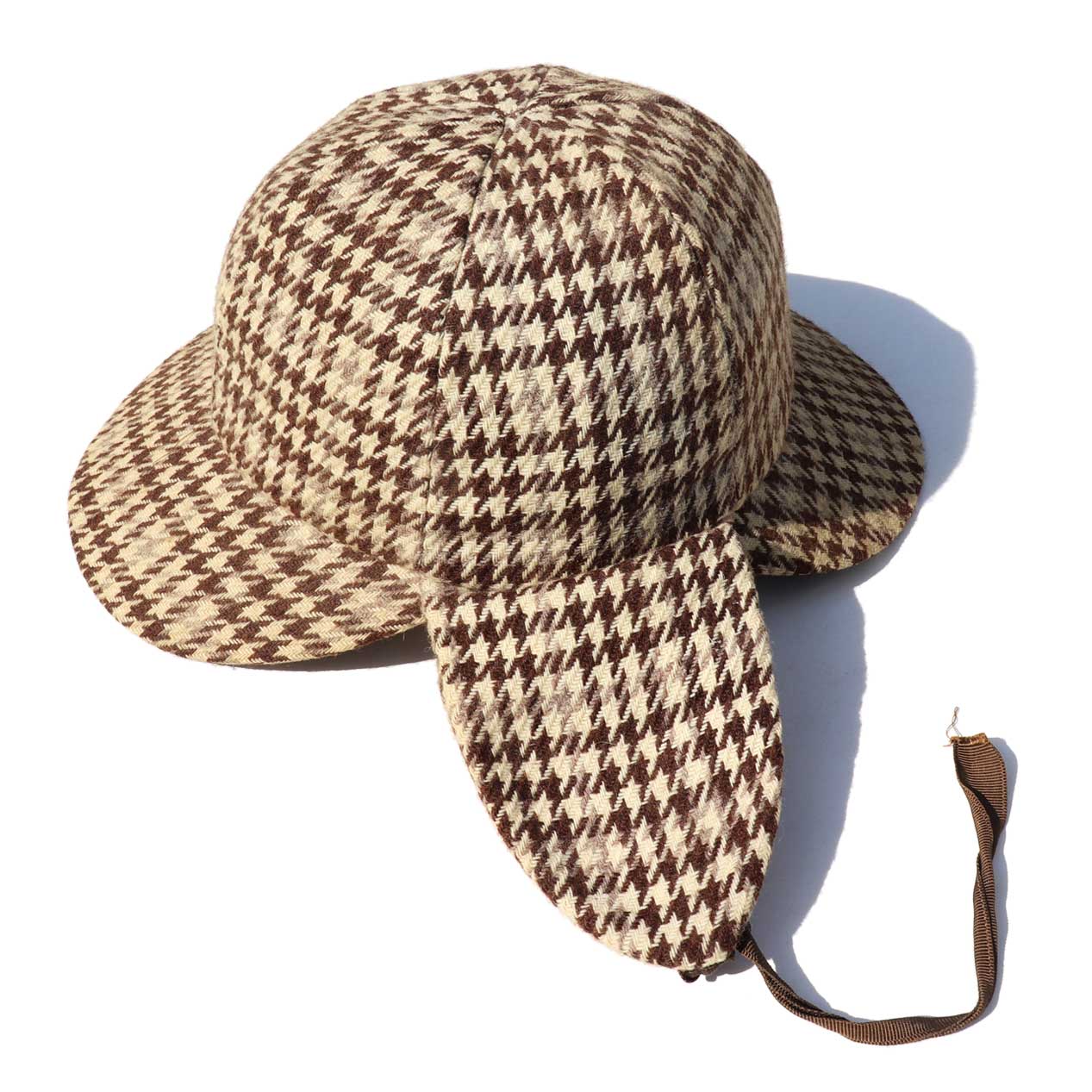 MODEL : UNKNOWN Houndstooth Tweed Deerstalker Hat MADE IN : --- AGE : 60's~ SIZE : M COLOR : ブラウン系 MATERIAL : --- (おそらくウール 100%) COMMENT : 60年代~、ブランド不明のディアストーカーハットです。