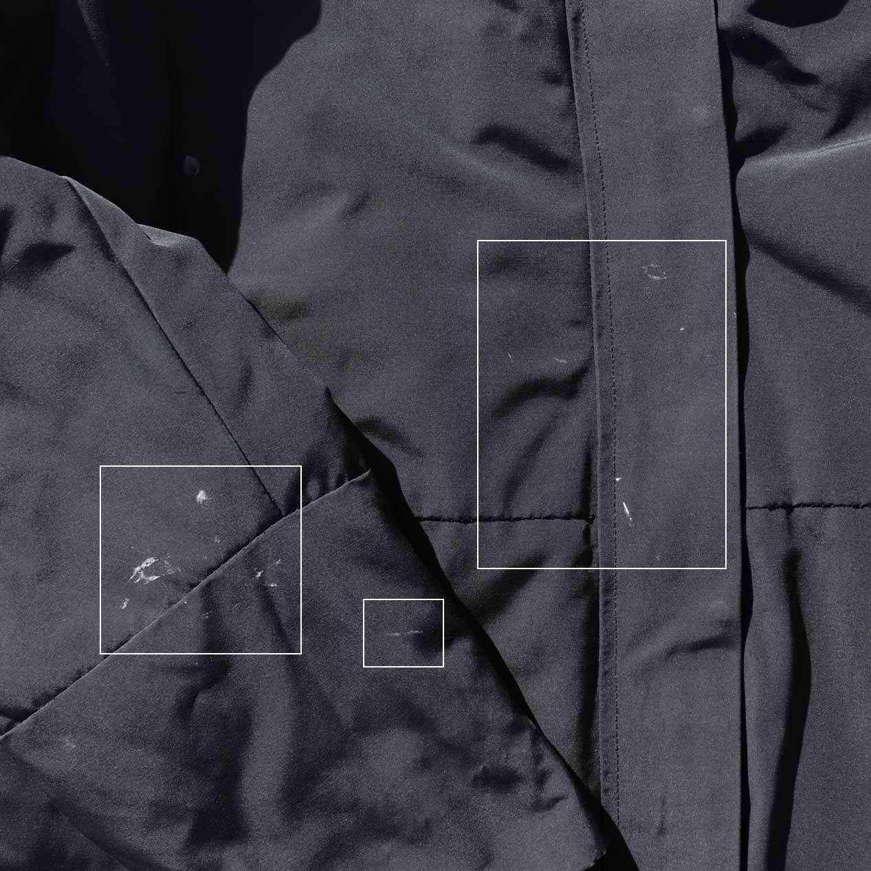 ・フロント、袖 : 腹部・右袖にペンキのような白い汚れ