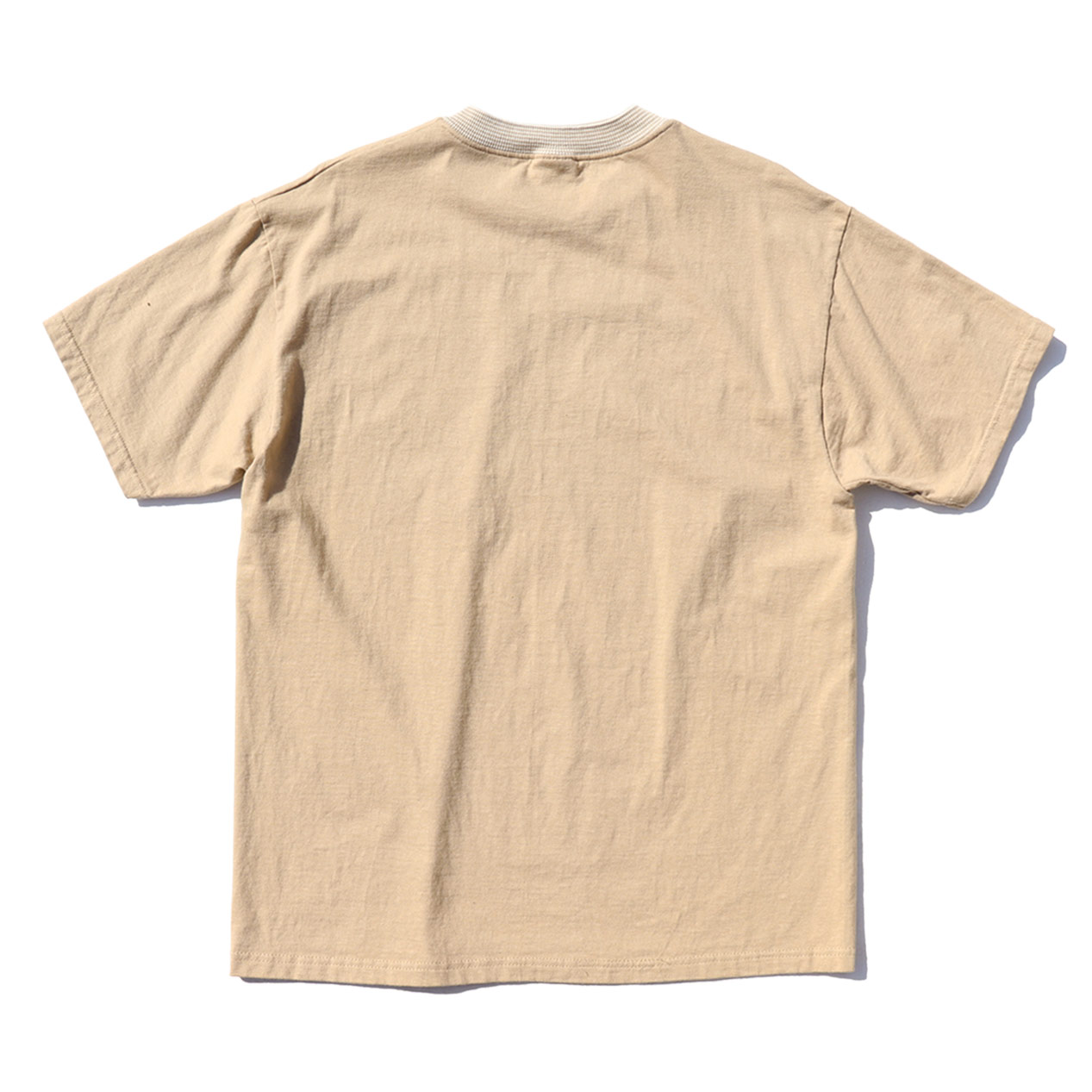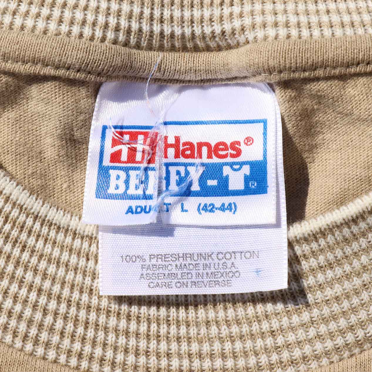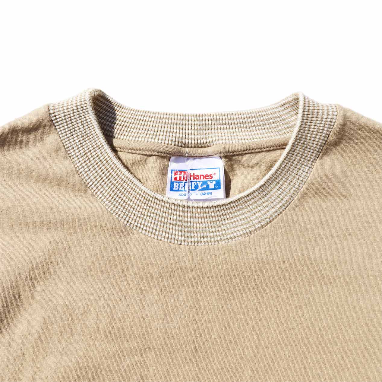 90’s~ HANES BEEFY-T “RIB-KNIT COLLAR / BLANK” T-Shirt Beige [L]