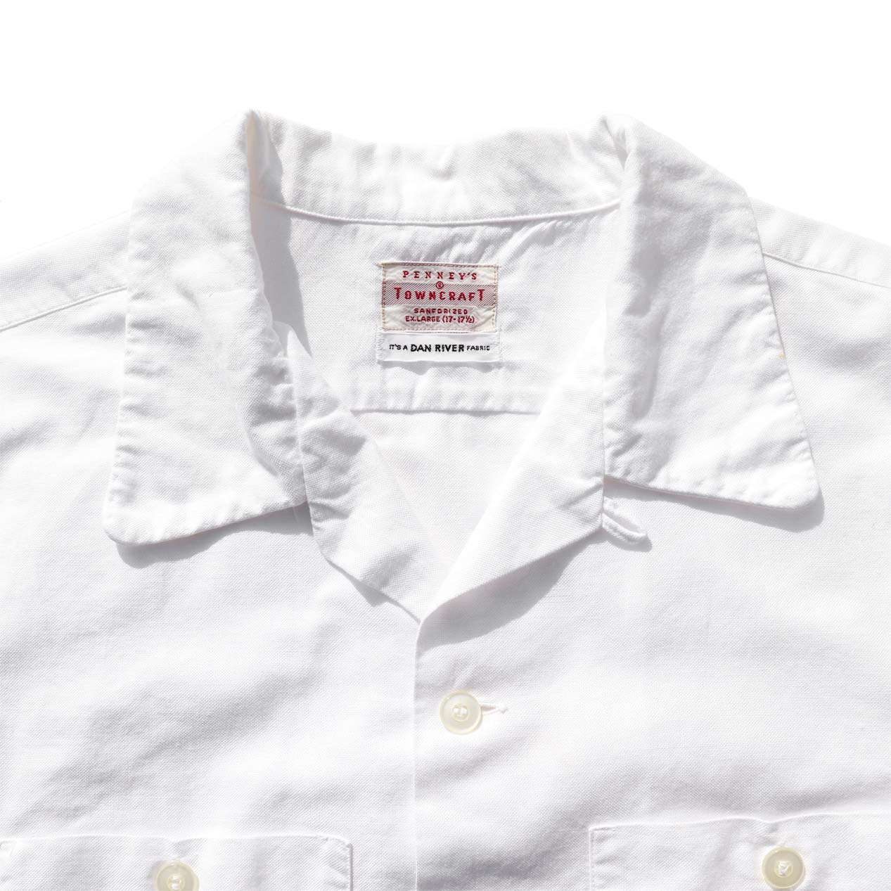 MODEL : TOWNCRAFT “WHITE OXFORD” Open Collar Cotton Shirt MADE IN : --- AGE : 50's~ SIZE : 17-1/2 COLOR : ホワイト MATERIAL : --- (おそらくコットン 100%) COMMENT : 50年代~、タウンクラフトのL/Sシャツです。