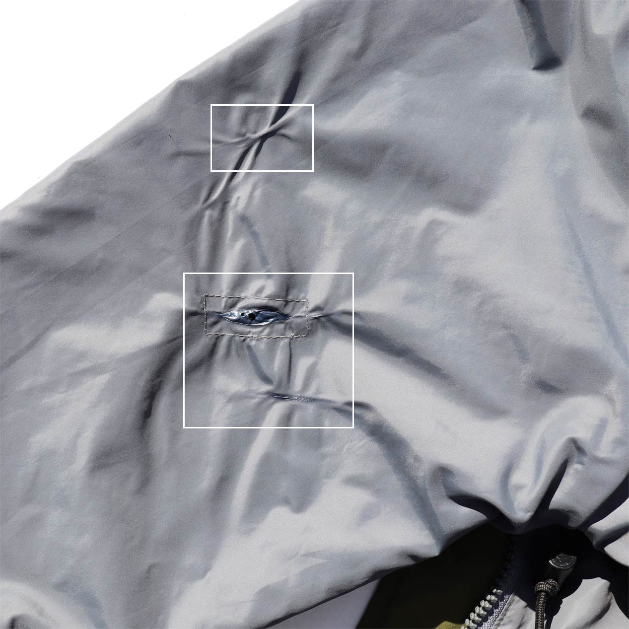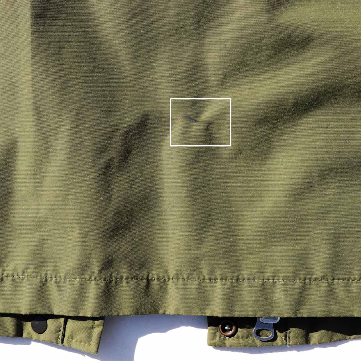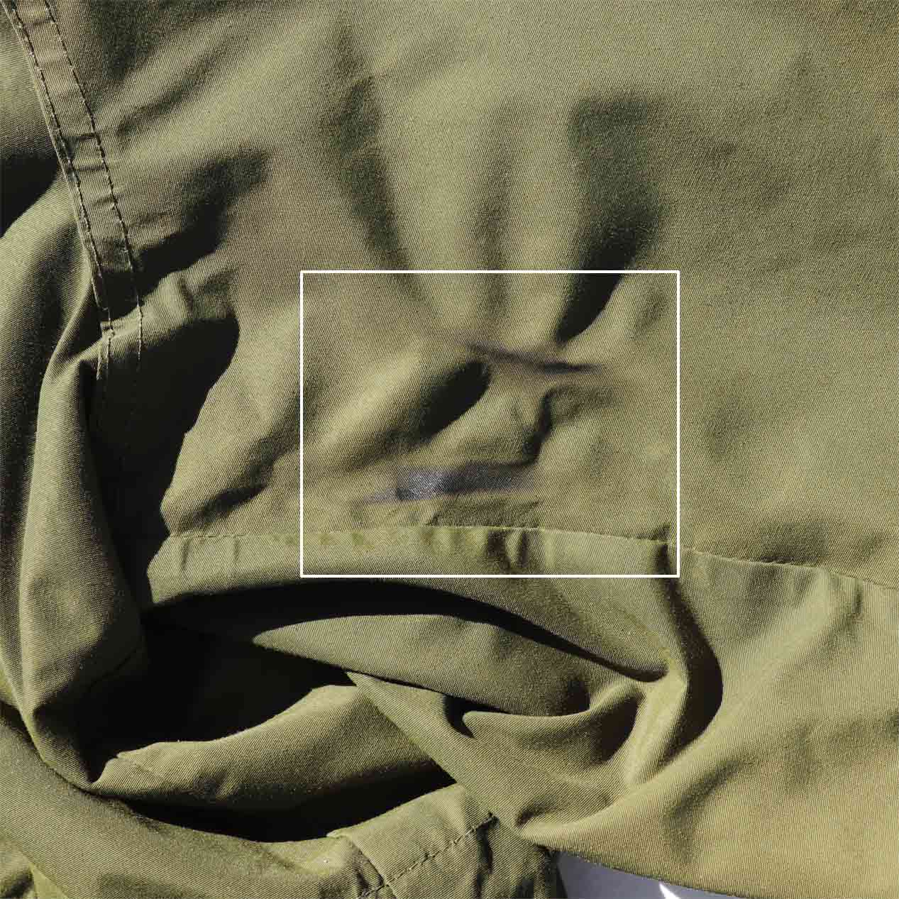 ・裏面 : 右袖裏地に溶け跡・溶け穴に当て布リペア