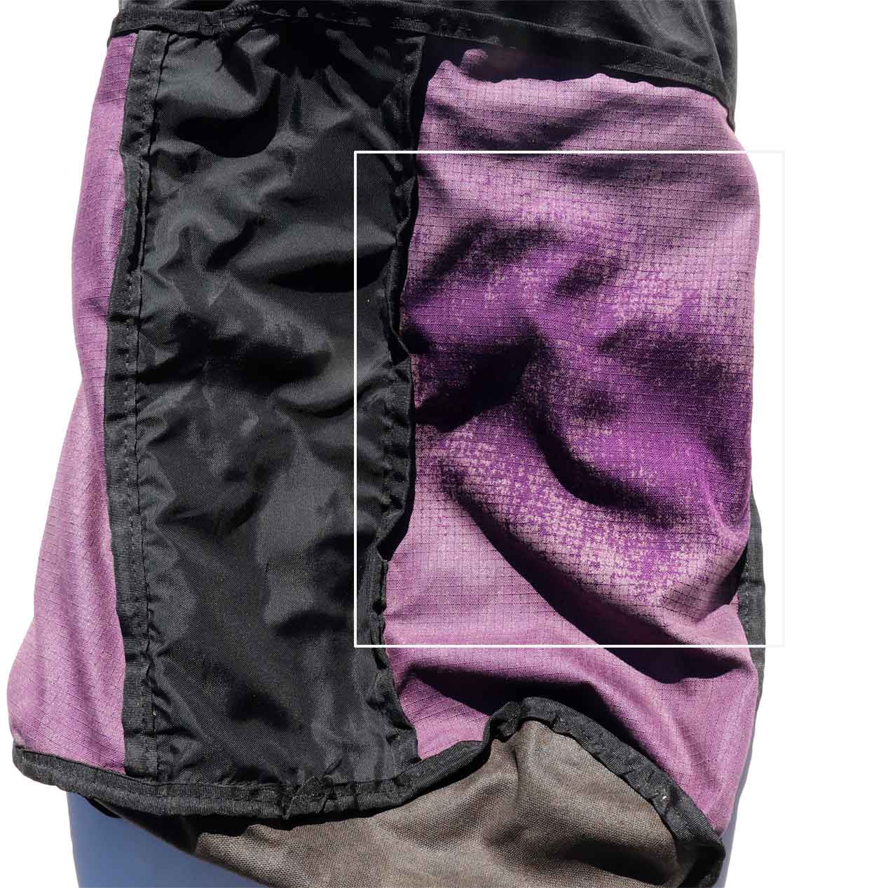 全体的に使用感や内部にPUコーティング劣化はありますが匂いやベタつきはありません。