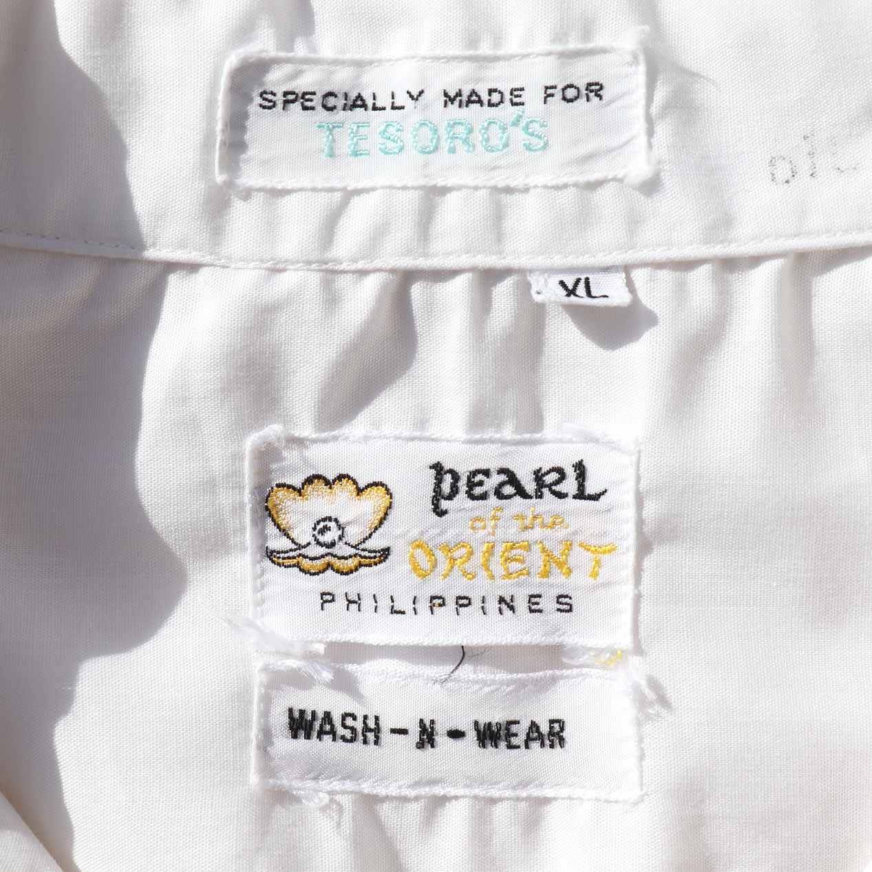 70’s PEARL OF THE ORIENT All White Guayabera Shirt [XL]