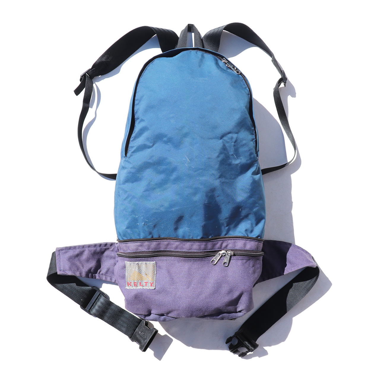 MODEL : KELTY Convertible Nylon Bag MADE IN : --- AGE : 80's SIZE : --- COLOR : パープル/ブルー MATERIAL : --- (おそらくナイロン 100%) COMMENT : 80年代 ケルティ