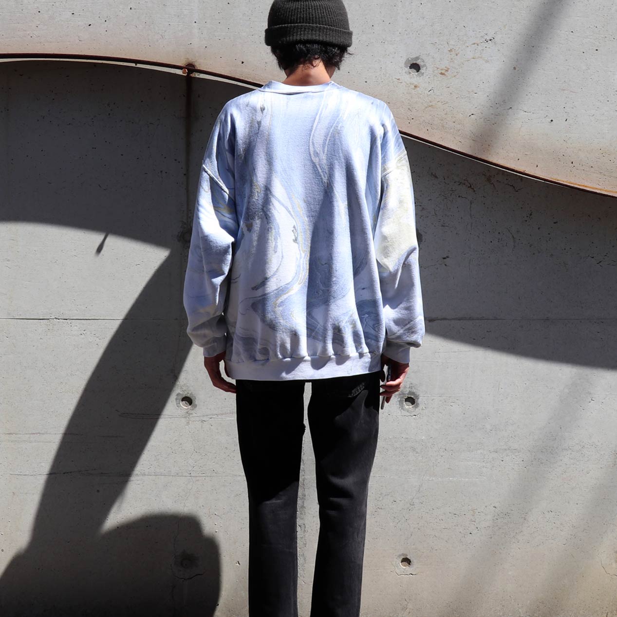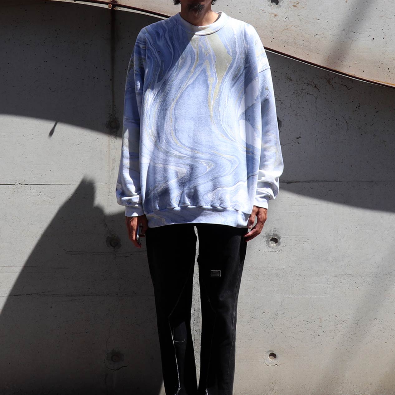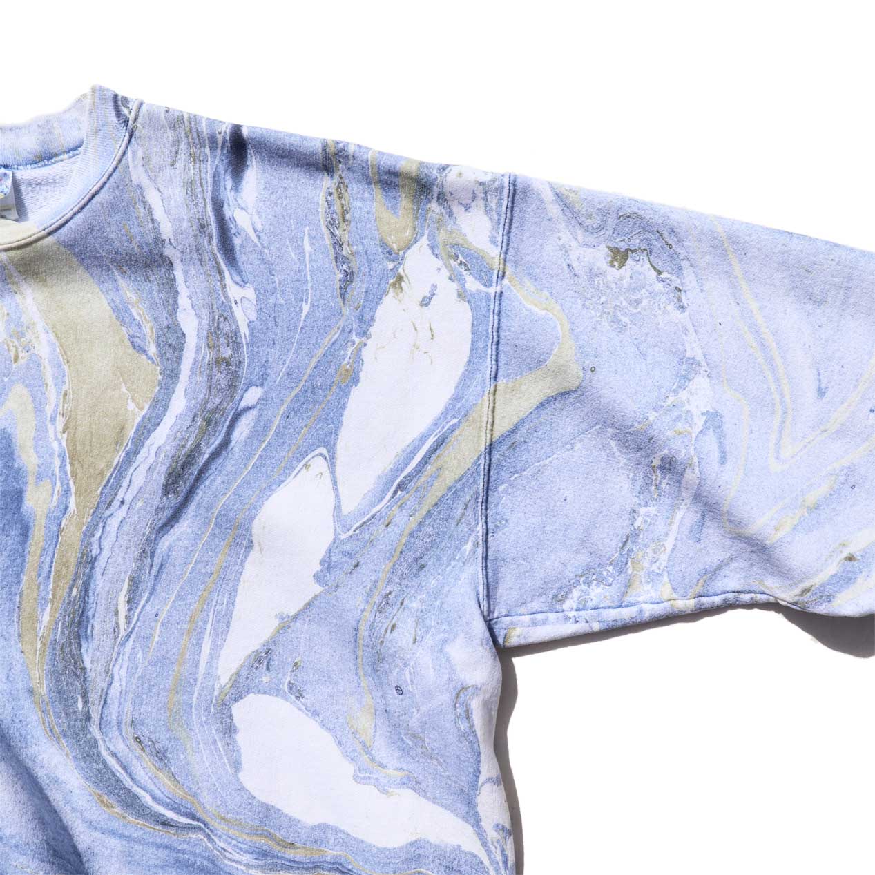 MODEL : HANES Marble Printed Sweatshirt MADE IN : Mexico AGE : 90's SIZE : XL COLOR : ブルー系 MATERIAL : コットン 50% ポリエステル 50% COMMENT : 90年代 ヘインズ