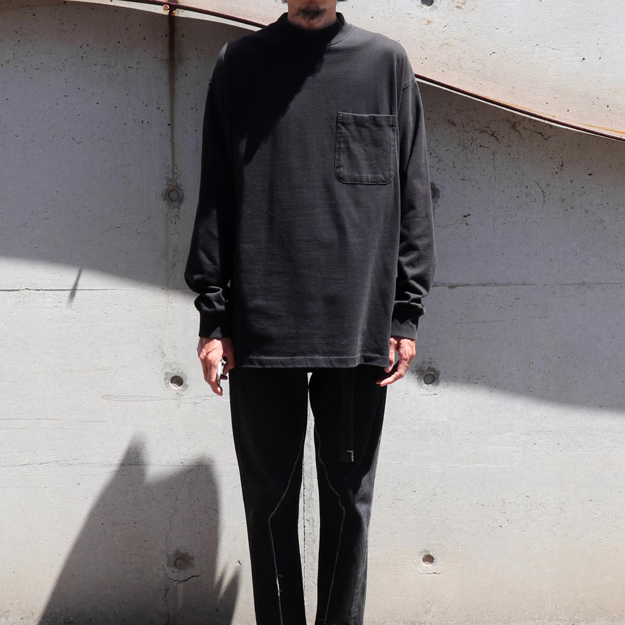 袖先リブ、身頃裾シングルステッチ