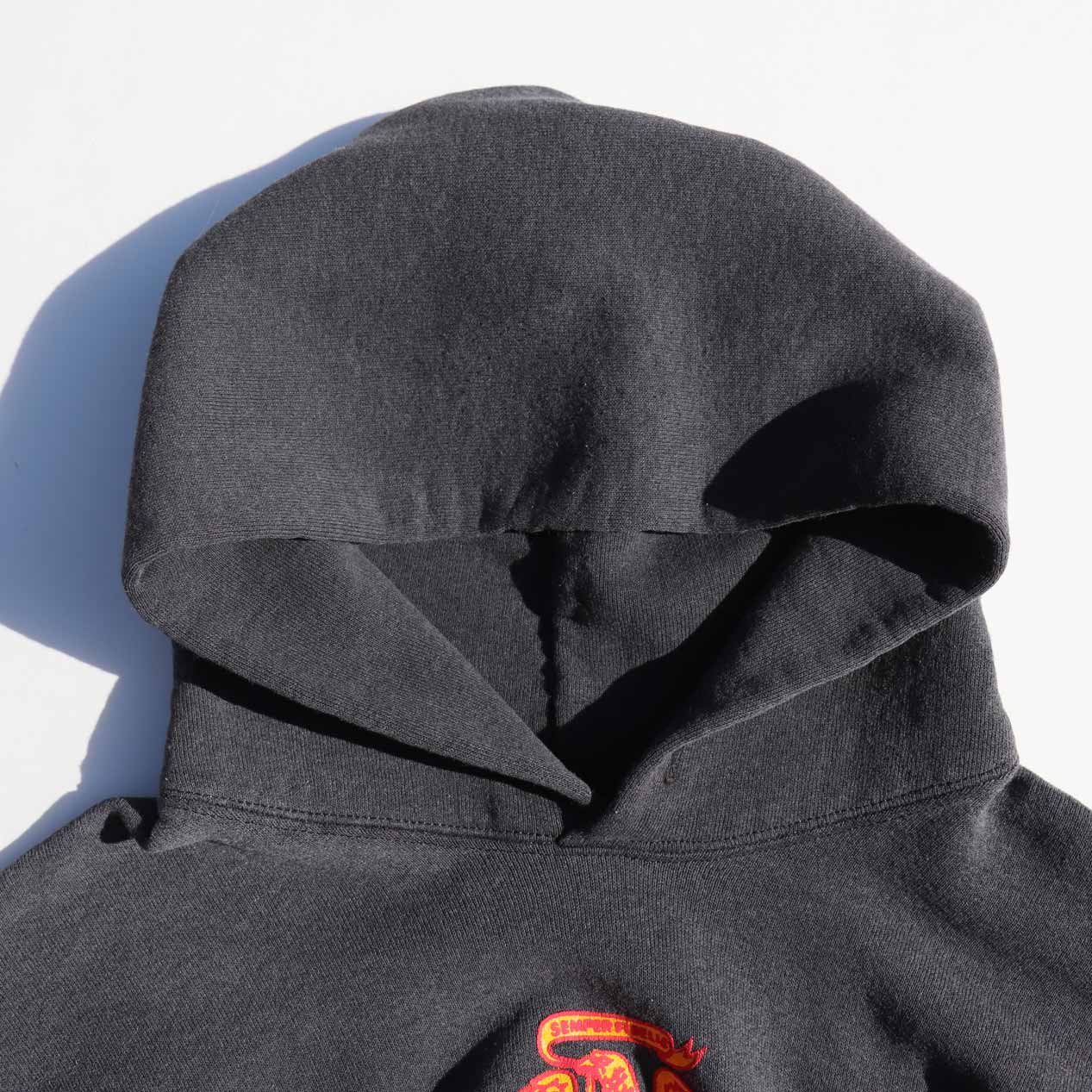 フードはしっかりダブル仕様、紐は欠損しています。