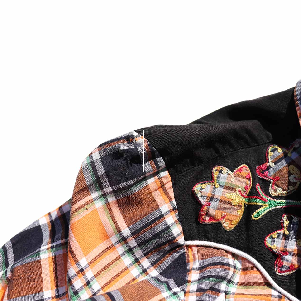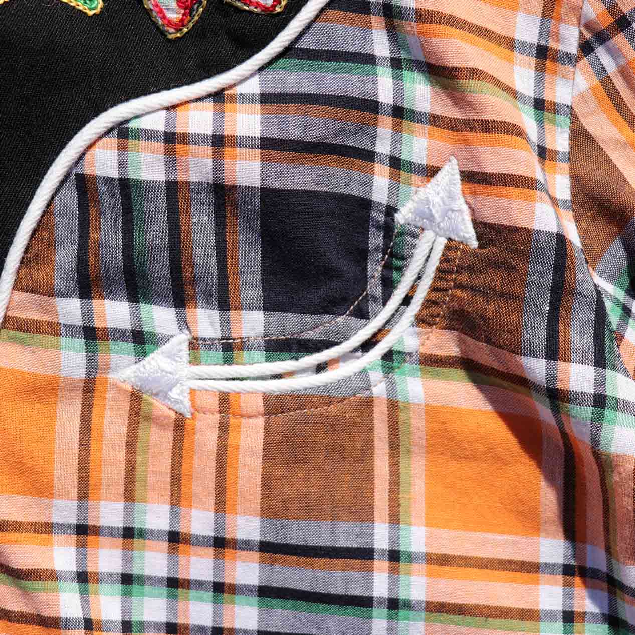 胸元の刺繍にもこの共布が当て込まれています。