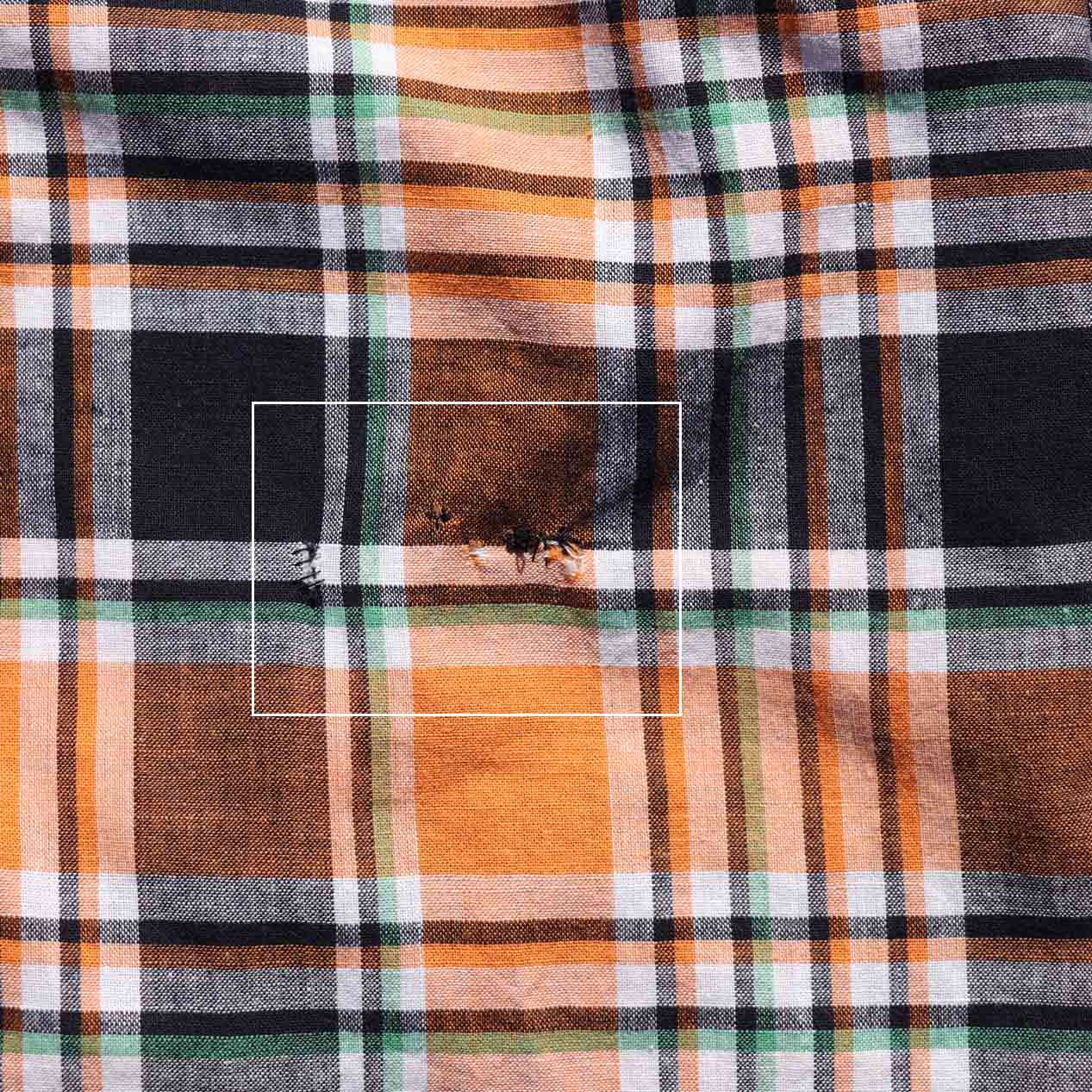 ・フロント、バック、右袖 : 小穴のリペア跡