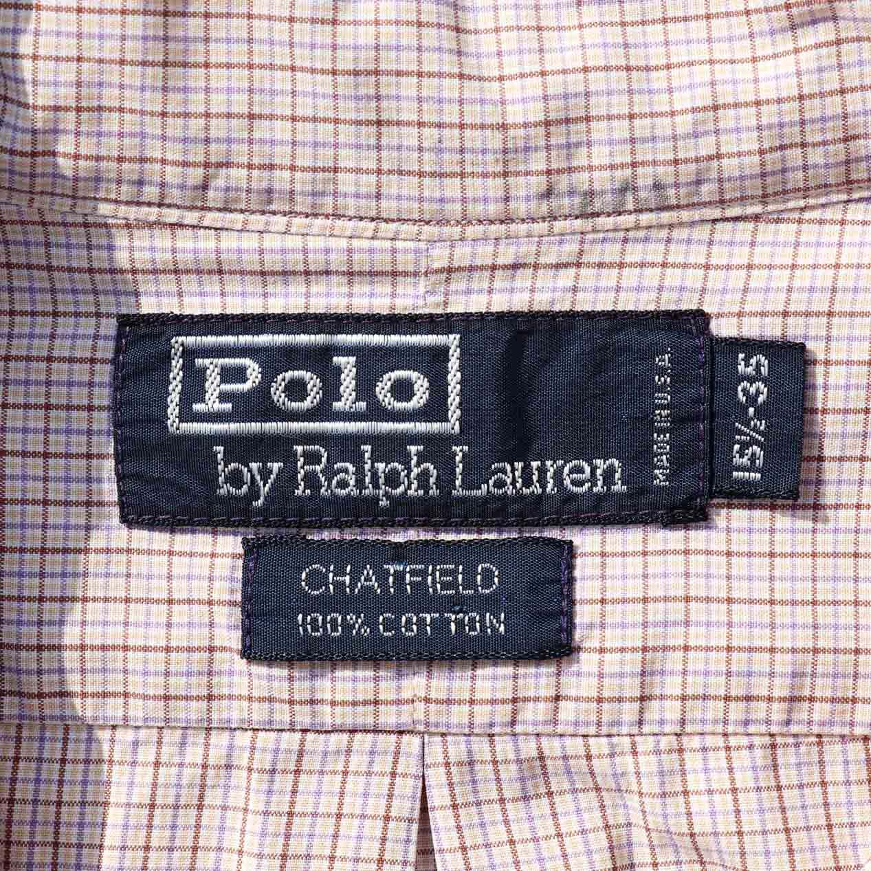 MODEL : POLO RALPH LAUREN CHATFIELD Check Shirt MADE IN : U.S.A. AGE : 90's SIZE : 15 1/2 COLOR : ライトブラウン系 MATERIAL : コットン 100% COMMENT : 90年代 ポロラルフローレン