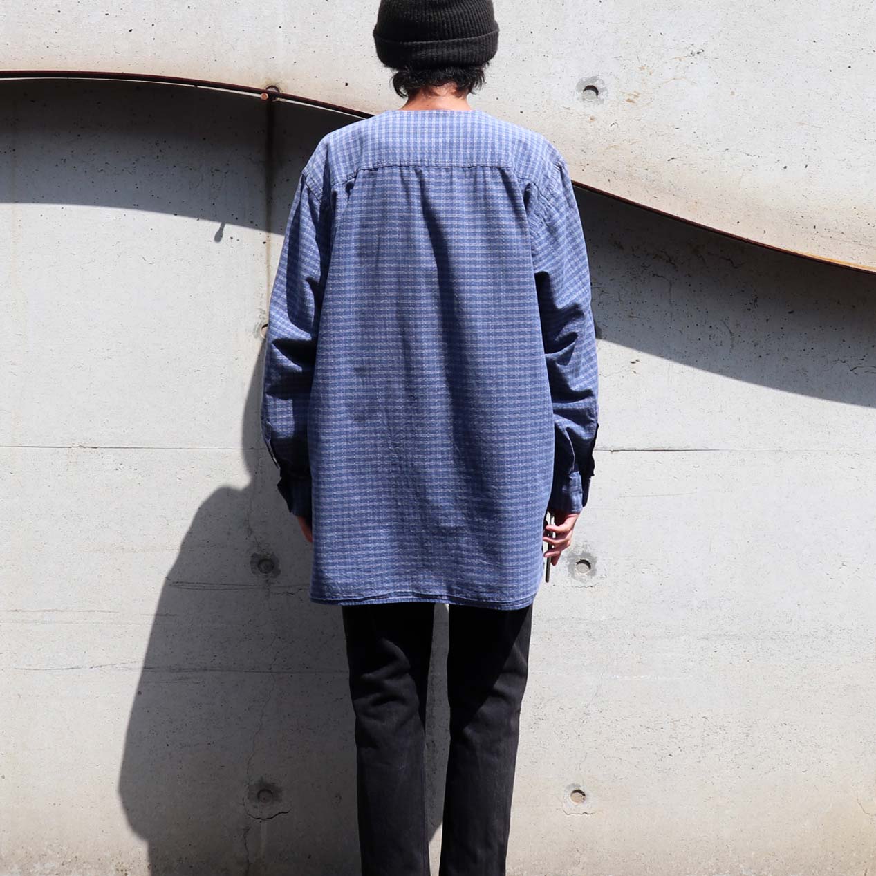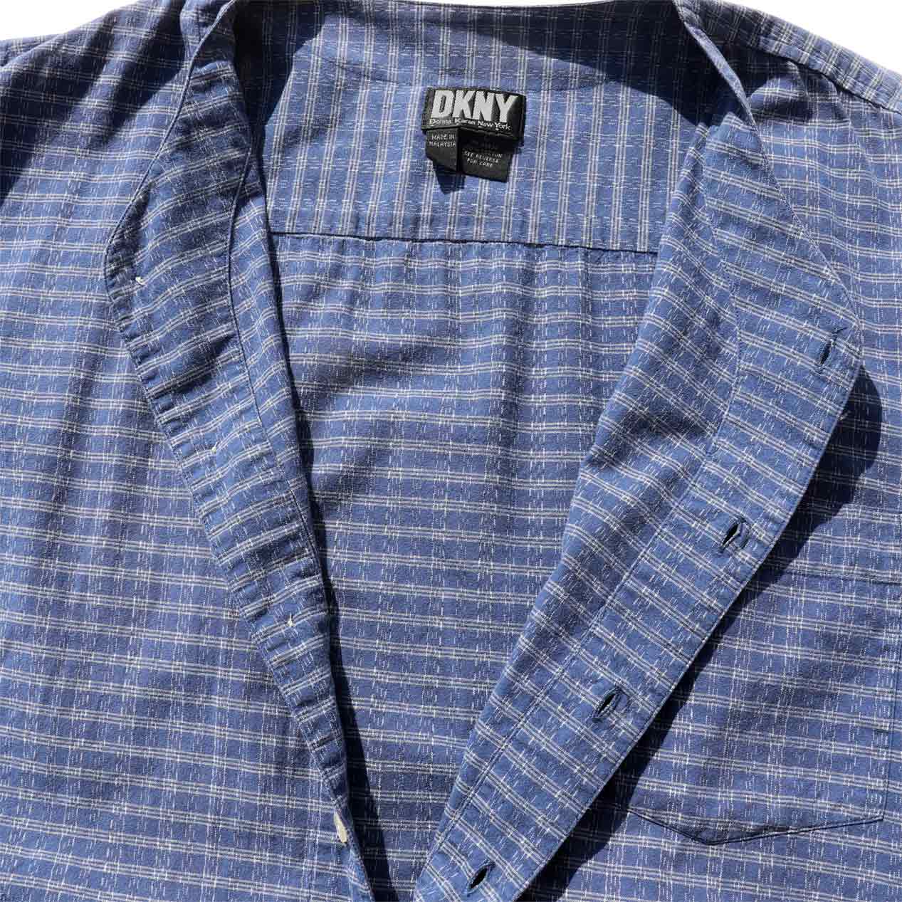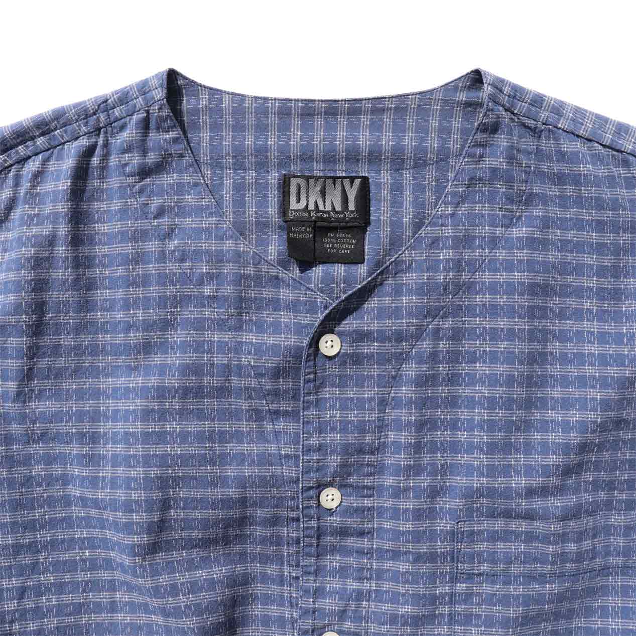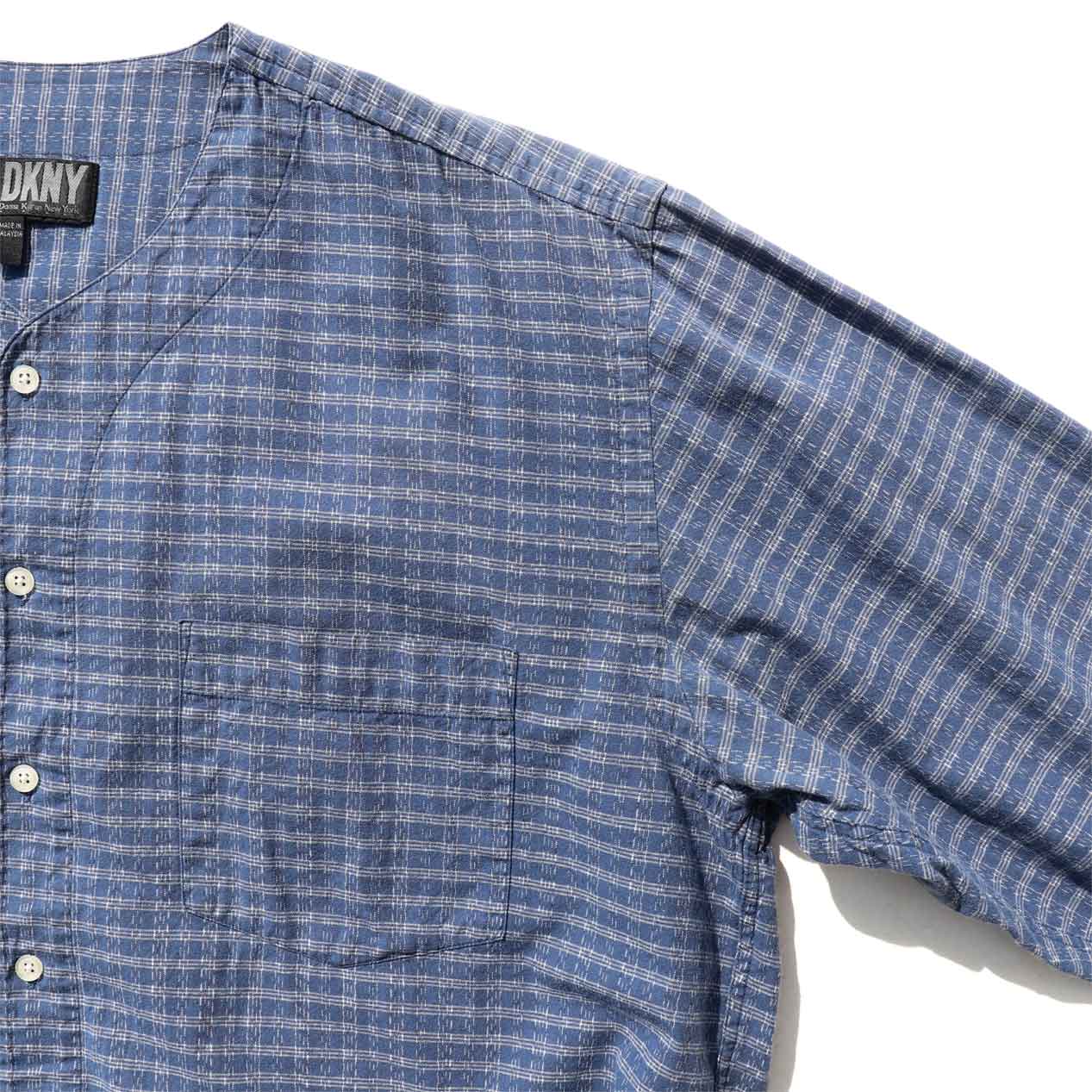 MODEL : DKNY No Collar Shirt MADE IN : Malaysia AGE : 90's SIZE : L COLOR : ブルー MATERIAL : コットン 100% COMMENT : 90年代 ディーケーエヌワイ
