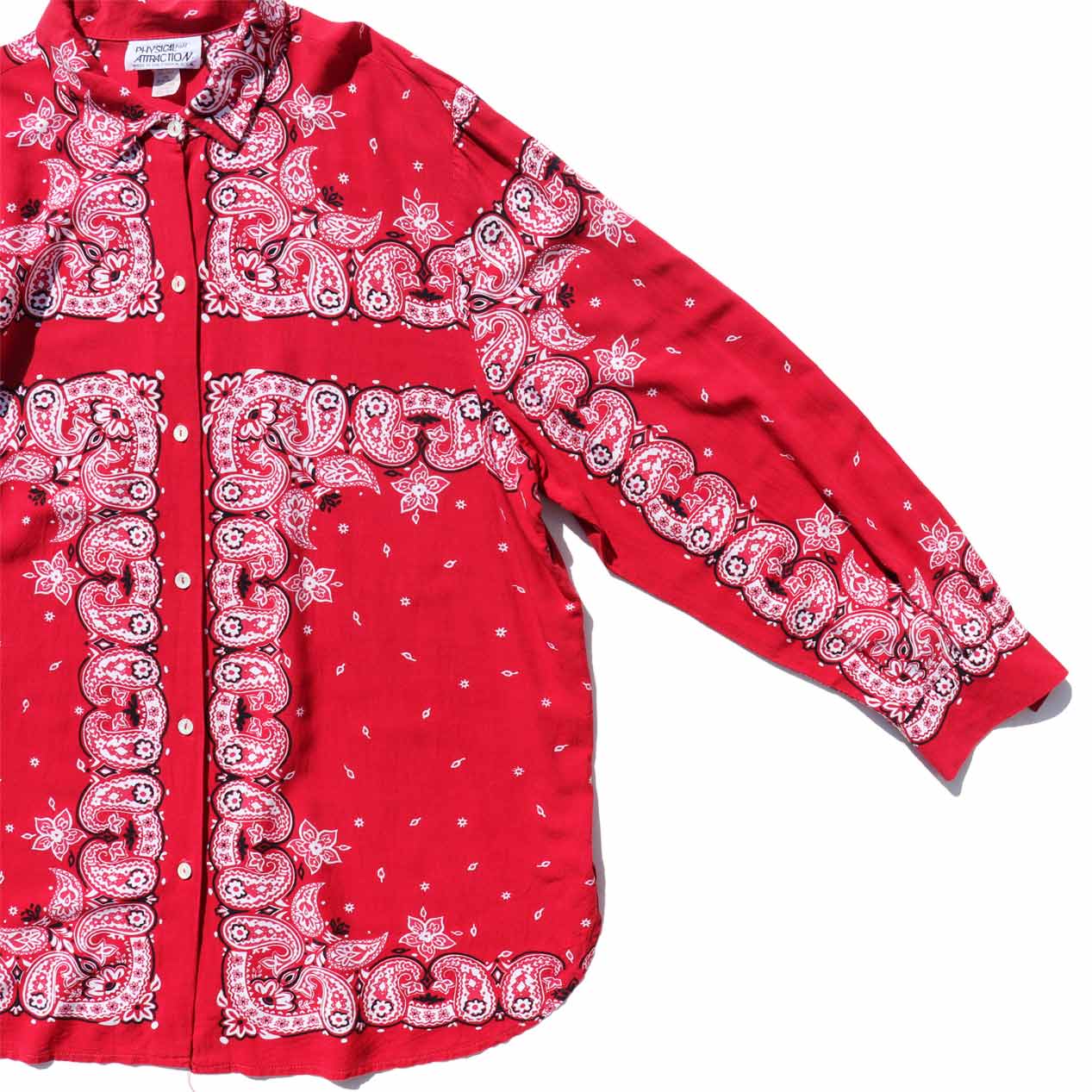 80’s~ PHYSICAL ATTRACTION Paisley Rayon Shirt Made In U.S.A. [Women’s XL]