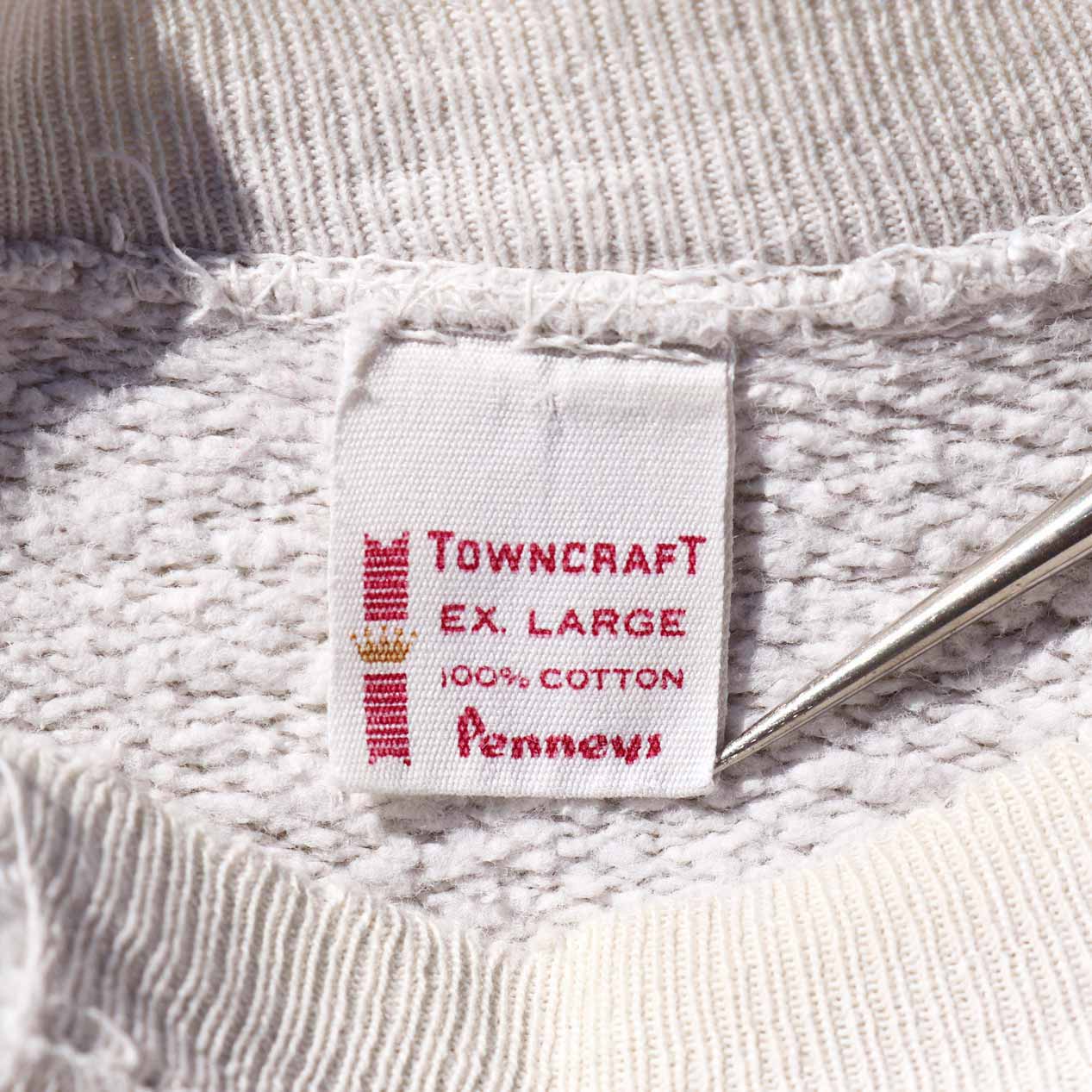 MODEL : TOWNCRAFT Both Sides Print & Damaged Sweatshirt MADE IN : --- AGE : 60's SIZE : XL COLOR : ホワイト MATERIAL : コットン 100% COMMENT : 60年代 タウンクラフト