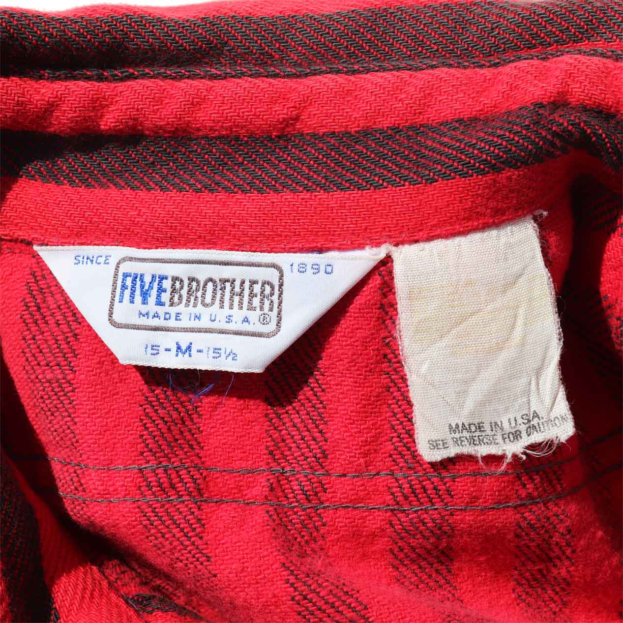 80’s FIVE BROTHER Red / Black Striped Heavy Flannel Shirt Made In U.S.A. [M]